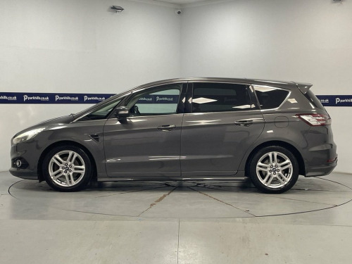 7 SEATER, PANORAMIC ROOF, FORD INFOTAINMENT SYSTEM FEATURING HDD SAT NAV, BLUETOOTH PHONE AND MEDIA, FRONT AND REAR PARKING SENSORS, AIR CON WITH CLIMATE, PRIVACY GLASS, 18" ALLOYS, FUL BLACK LEATHER, CRUISE CONTROL, DAYTIME RUNNING LIGHTS, HEATED SEATS, FLEXIBLE MONTHLY PAYMENTS AVAILABLE ON THIS CAR. This seven seat model finished in Magnetic grey metallic is powered by a 2.0 litre diesel engine and meets Euro 6 emissions standards. It comes equipped with a striking Panorama Roof, a practical Winter Pack including a heated steering wheel, and rear air conditioning for passenger comfort. Keyless entry adds to the convenience, alongside dual zone electronic automatic temperature control for the cabin. The Titanium Sport trim level ensures a well appointed driving experience. This S-Max accelerates from 0 to 60mph in 9.7 seconds, demonstrating a responsive performance. These features collectively highlight how this Ford S-Max provides a superior combination of practicality, comfort, and driving dynamics compared to other vehicles in its class, privacy glass, with, dual zone climate control with air con, cruise control, front and rear park sensors, privacy glass, power fold electric door mirrors, heated front screen, cd- aux media entertainment, 18 inch titanium x alloys, electric windows and mirrors, remote central locking alarm/immobiliser, multi airbag safety system. Supplied with HPI report and vehicle book pack. THIS CAR IS AA APPROVED AND SOLD WITH A 145 POINT AA INS 10.1in Colour TFT Instrument Cluster Dis, 12V Power Socket - Front, 12V Power Socket - Rear, 18in Alloy Wheels - 5x2 Spoke, 8in Touchscreen Colour Display, A-Pillar - Fabric Covered, ABS - Anti-lock Braking System, Air Conditioning - Dual Zone Electronic , Airbags - Drivers Knee Bolster, Airbags - Front and 2nd Row Curtain, Airbags - Front Passenger, Airbags - Side Impact, Alarm - Thatcham Category 1 with Volume , Aluminium Pedals, Armrest - Centre Console, Automatic Dimming Rear View Mirror, Automatic Rain Sensing Wipers, AUX Connection, B-Pillar - Fabric Covered, Bluetooth - Audio Streaming, Bluetooth Handsfree Phone System, Body Colour Exterior Mirrors, Body Colour Side Mouldings, Bumpers