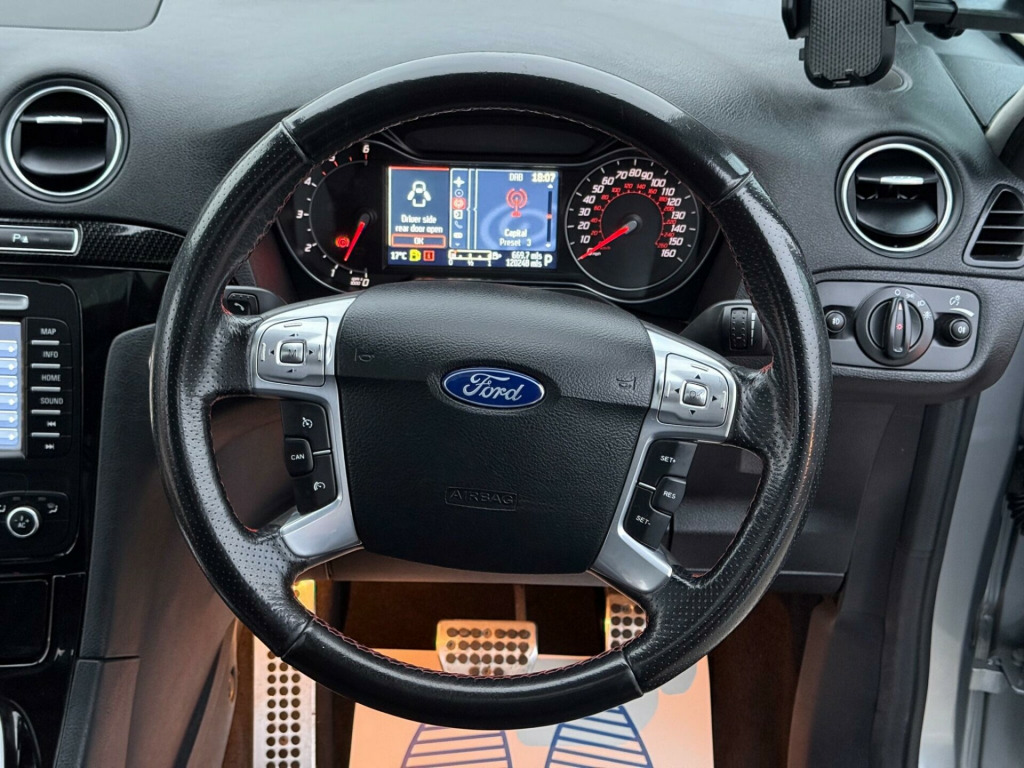 This 2014 Ford S-Max TDCi Titanium X Sport offers a compelling blend of practicality and premium features. With its powerful 2.2 litre diesel engine, this seven seater is ready for family adventures or executive travel. Keyless entry provides effortless access, while the dual zone climate control ensures comfort for all occupants. Entertainment is handled by a Sony DAB radio with CD, MP3, and USB connectivity, all delivered through a premium audio system. For added convenience, the door mirrors are power folding, and both the driver and passenger seats are heated, making every journey a pleasure.The performance of this S-Max is noteworthy, achieving 0-62mph in just 8.9 seconds. This brisk acceleration, combined with the Titanium X Sport trim, signifies a higher level of specification and driving experience compared to other models. The spacious interior, accommodating up to seven people, makes it an exceptionally versatile vehicle, well suited for those who require flexibility without compromising on comfort or style. ny dab digital radio/cd/usb/mp3/music streaming via bluetooth, air conditioning - dual zone electronic automatic temperature control, led daytime running lights, automatic rain sensing wipers, headlights - automatic, keyless entry/start remote central locking with 2 key fobs, headlights - cleaning system, headlights - levelling system - automatic, cruise control, 18in alloy wheels - 5 spoke, electric windows - front and rear with one touch drivers, door mirrors - electrically operated and heated, windscreen - heated with heated washer jets, privacy glass, centre console - overhead short with stowage bin and sunglasses holder, seats - front sports, front seat - driver electric height adjustment, drivers seat lumbar support, front centre armrest with storage compartment, isofix, steering wheel - multifunction, steering wheel - soft feel leather-trimmed, 12v power socket - front, 12v power socket - rear, abs - anti-lock braking system, aux connection, airbags - drivers knee bolster, airbags - front passenger, airbags - front and 2nd row curtain, airbags - side impact, alarm - thatcham category 1 with volume sensing and perimeter, aluminium pedals, automatic dimming rear view mirror, bi-xenon headlights, body colour exterior mirrors, door mirrors - puddle lights, door mirrors with integrated indicators, drivers airbag, eba - emergency brake assist, ebd - electronic brakeforce distribution, esp - electronic stability programme, emergency brake warning, ford convers+ instrument cluster with colour display, ford easy fuel capless refuelling system with misfuel inhibitor, ford easy-fuel capless refuelling system, ford power engine start-stop button, front fog lights, fuel computer, gear knob - leather, headlights - static cornering lights, honeycomb design 3-piece lower front grille insert in high-gloss black, ips - intelligent protection system, load compartment - tie down hooks, power rear door child locks, power steering, rear lights - led, rear seats - 2nd row easy entry tip and slide system, rear spoiler, solar reflect windscreen, speed limiter - active, sports suspension, steering column - rake and reach adjustment, sun blinds - power, ta - traction assist, tonneau cover, full service history (11 service invoices/stamps), alcantara - napoli leather - ebony red stitching, heated driver and passenger seats, parking sensor - rear, power fold door mirrors, touch-screen navigation system, sony dab radio - cd-mp3 and usb with premium audio system, bluetooth handsfree and voice control, panoramic glass roof, central locking - keyless entry