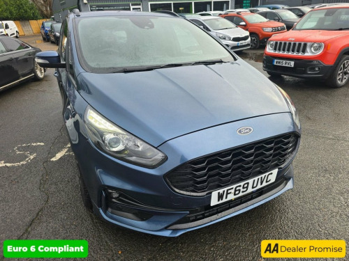 This 2019 Ford S-Max ST-Line boasts an exceptionally low mileage for its age, having covered just 44,100 miles, and benefits from a full service history, with its last service completed on 22nd October 2025 at 43,853 miles. This seven seat, Euro 6 compliant, 2.0 litre diesel model features a four wheel drive drivetrain, ensuring confident handling in various conditions. It comes with a 3 month warranty and a 12 month MOT provided on purchase, offering peace of mind. The ST-Line trim level enhances the S-Max with a sporty feel and includes a range of desirable features. You'll appreciate the convenience of keyless entry and an 8-way power adjustable driver's seat with memory function. Stay comfortable with dual zone electronic automatic climate control, and enjoy seamless connectivity and navigation through the Ford SYNC 3 system, complete with DAB radio, Android Auto, and Apple CarPlay. Parking is made easier with front and rear parking sensors. This particular model accelerates from 0-60mph in 9.9 seconds, demonstrating a strong performance that sets it apart from many similar vehicles. 10.1in Semi-Digital Instrument Cluster, 18in Alloy Wheels - ST-Line, 2 USB Ports, 230V Power Outlet in Centre Console, 4-Way Manual Adjustable Front Seats with, 8-Way Power Driver Seat with Memory, 8-Way Power Front Passenger Seat, Active City Stop, Air Conditioning - Dual Zone Electronic , Airbags - Driver and Front Passenger, Airbags - Drivers and Passengers 1st and, Airbags - Drivers Knee Bolster, Airbags - Front Side Impact, Airbags - Passenger Airbag Deactivation , Alarm - Thatcham Category 1 with Volume , Aluminium Sports Pedals, Ambient Lighting, Anti-Lock Braking System - ABS with Elec, Auto Dimming Rear View Mirror, Automatic Headlights, Automatic Wipers with Variable Sensitivi, Bla