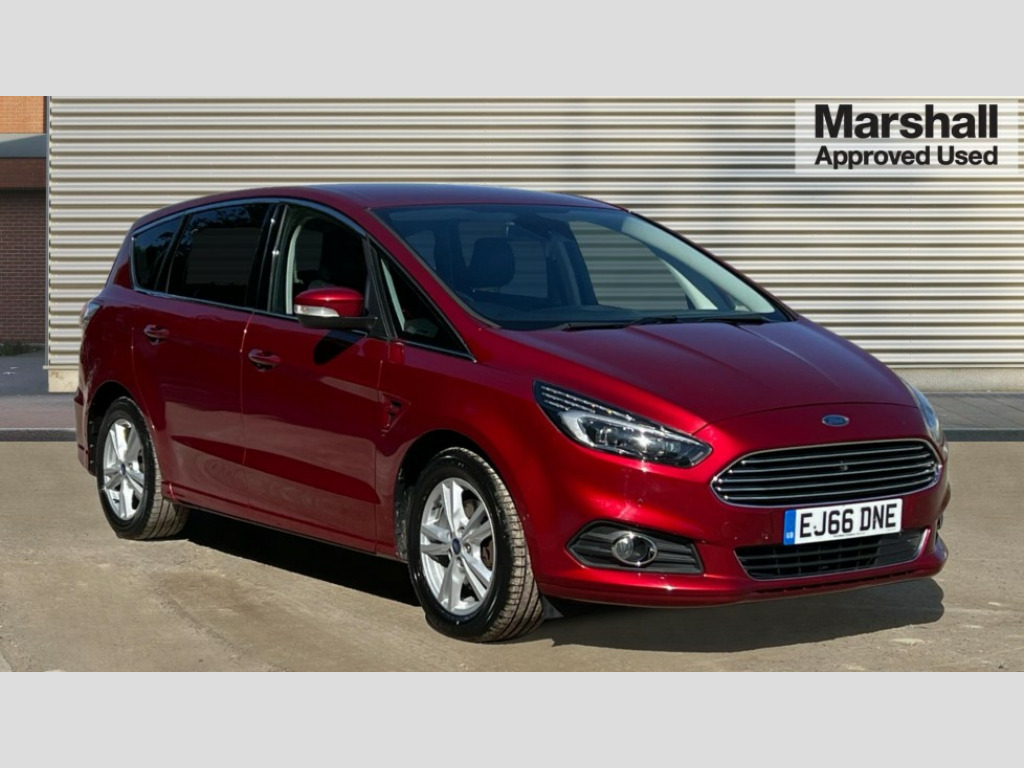 Ford S-MAX 2.0 TDCi 180 Titanium 5dr Bluetooth hands free phone with voice control system, Driver alert system, Easy fuel capless refuelling system, Ford convers+ (256 colour instrument panel), Ford SYNC 3 with 8" colour touch screen, Front and rear park assist, Lane keep assist, PAS, SYNC Emergency Assistance, Traffic sign recognition, Diesel particulate filter, 8 Speakers, Remote audio controls on steering wheel, Auto dimming rear view mirror, Automatic headlights, Automatic illuminating hazard lights in sudden deceleration, Body colour door handles, Body colour electric/folding/heated door mirrors with puddle lights, Body coloured bumpers, Chrome grille surround, Chrome side window surrounds, Dual chrome exhaust, Electric front and rear windows + one touch + global open/closing, Front fog lights, Heated windscreen + heated windscreen washer jets, High beam assist, LED daytime running lights, LED rear lights, Rain sensing front wipers, Rear privacy glass, Tailgate wash/wipe, Tinted glass, 12V accessory sockets - front and rear, 2 individual folding 3rd row seats, 3 individual fold flat 2nd row seats, 4 spoke leather steering wheel, Ambient lighting, Axis cloth upholstery, Centre console with armrest/storage box + cupholder, Child observation mirror, Chrome finish to interior door handles, Drivers seat with electric height adjustment + manual lumbar support, Dual air conditioning with automatic temperature electronic control, Footwell lights, Front and rear courtesy reading lights, Front and rear velour floor mats, Front overhead courtesy lights with theatre style dimming and delay, Front passenger seat manual height adjustment with lumbar support, Front under seat storage, Fully adjustable front head restraints, Height adjustable rear head restraints, Illuminated entry system, Isofix rear child seat preparation in 2nd row, Leather gear knob, Luggage area lamp, Luxury woven headliner, Overhead console with sunglasses holder, Reach + rake adjustable steering column, Rear air vents, Rear stowage boxes, Sports front seats, Tie down hooks in luggage area, Tonneau cover, 3 point seatbelts on all seats, ABS/EBD, Driver/Front Passenger airbags, Drivers knee airbag, Electronic parking brake, ESP+EBA, Front and rear (row 2) curtain airbags, Front side airbags, Intelligent Protection System (IPS), Passenger airbag deactivate switch, Rear child proof door locks, Tyre pressure monitoring system, Immobiliser, Keyless entry with 'Ford Power' starter button, Locking wheel nuts, MyKey system, Remote control central/double locking, Thatcham category 1 alarm system with perimetric + volumetric protection, Space saver spare wheel