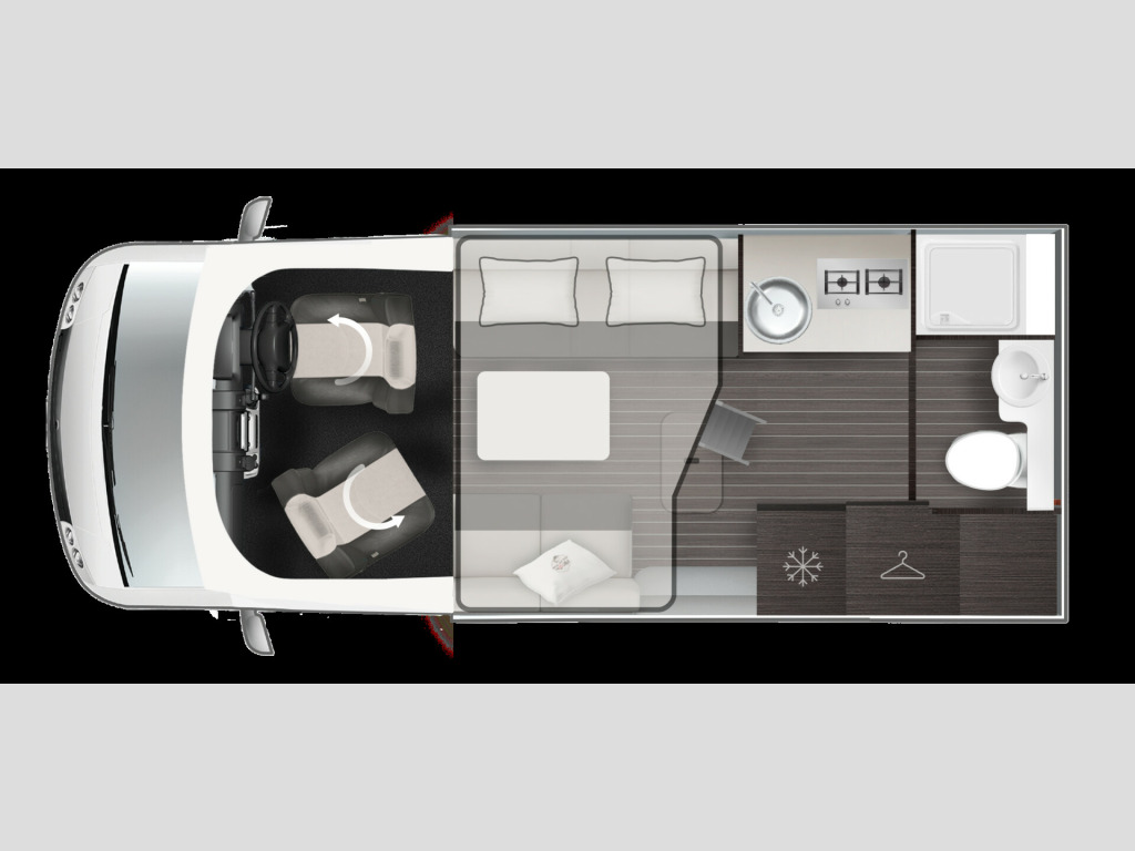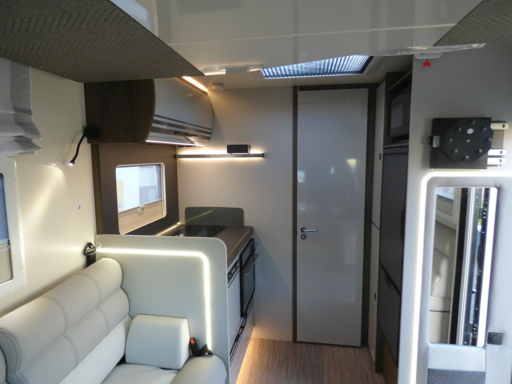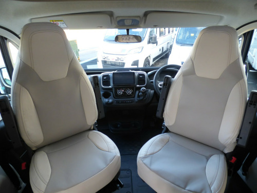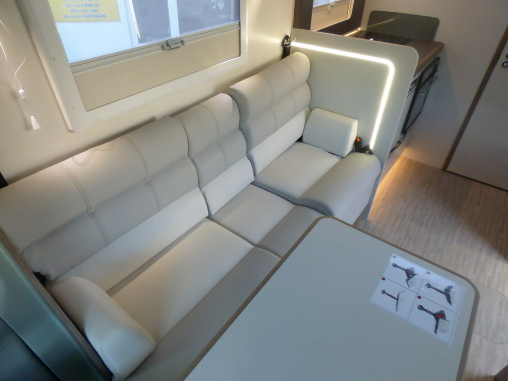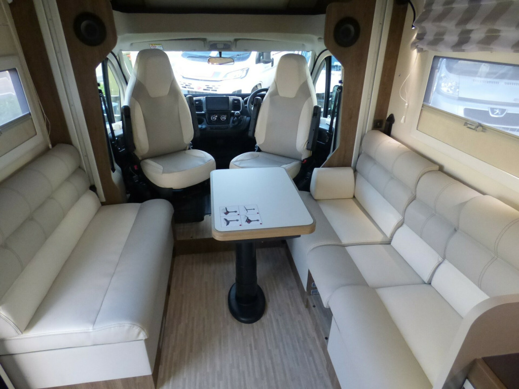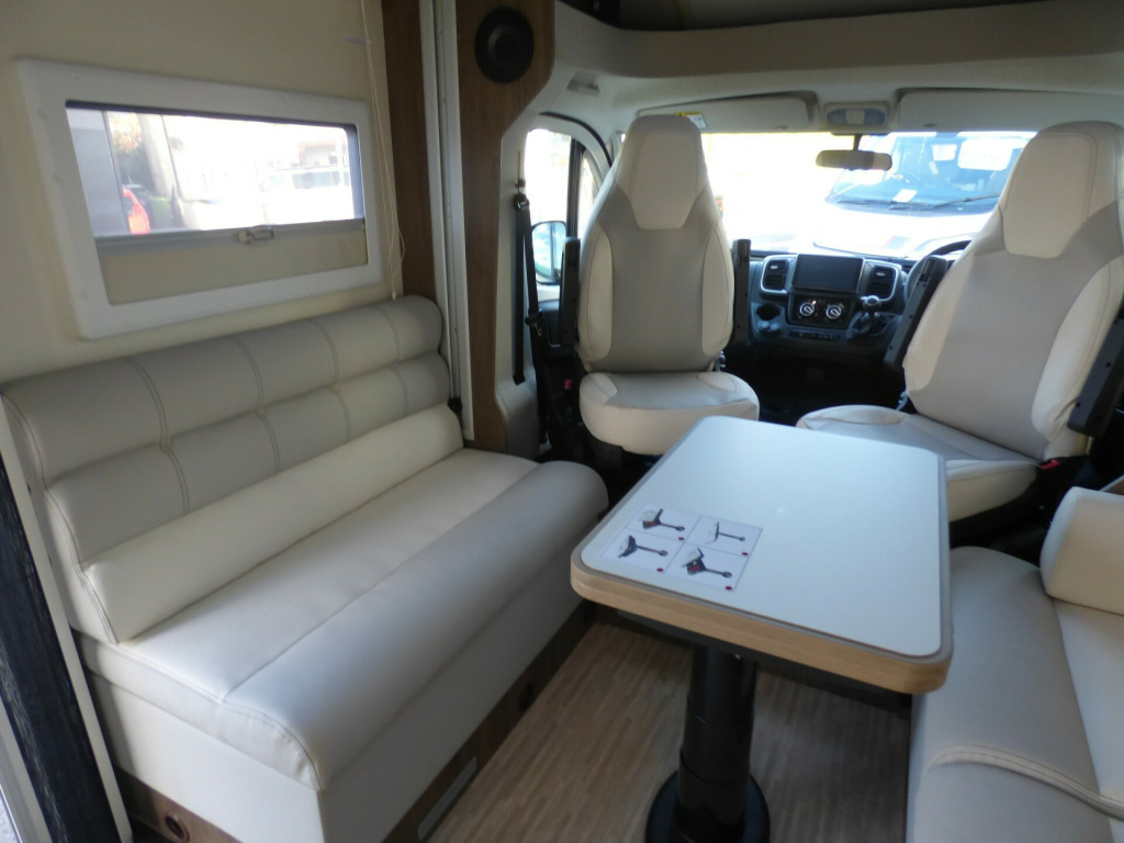 Brand New 2026 Model T-Line 590 140bhp automatic in stock now. A Fantastic new layout to the T-Line range, the new 590 model provides new lounge set up and a host of new features but maintains the price point from the 2025 model. The lounge area is laid out as two opposing sofas with the front seats swivelling to accommodate 6 with ease. The large elevating bed over simply drops down for evening use. The central kitchen is fitted with a gas hob, gas oven/grill and a new compressor fridge/freezer. The rear bathroom has a separate shower cubicle, cassette type toilet and a wash hand basin along with access to the rear storage area. Heating and hot water is via a Truma dual fuel system and other features for this T-Line 590 include: Alloy Wheels, Pioneer infotainment system, Twin 200w solar panels with MPPT controllers, Twin leisure batteries, Fiamma bike rack, Thule wind out awning, External BBQ and Shower points, WiFi, pleated cab blinds, carpets and ISOfix child seat fixings. 4 berth, 4 seat belts, L. 5.99m, W. 2.35m, H. 2.95m, 3,500kg, delivery miles. wifi, alloy wheels, automatic transmission, cab a/c, carpets, iso fix child seat fixings, microwave, pioneer sat nav/infotainment system, pleated cab blinds, reversing camera, thule 4 bike rack, thule awning, tv bracket, twin 200w solar panels with twin mppt controllers, twin leisure batteries, 16'' Alloys