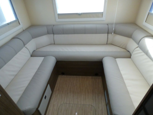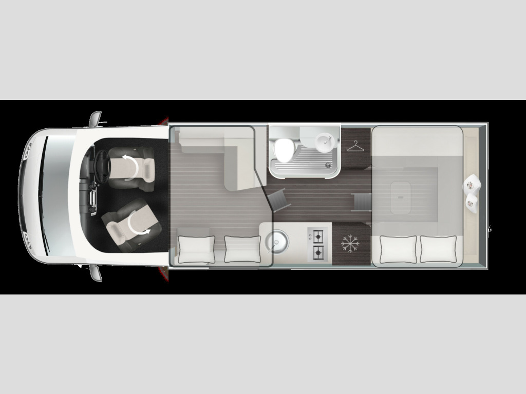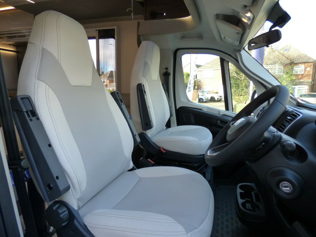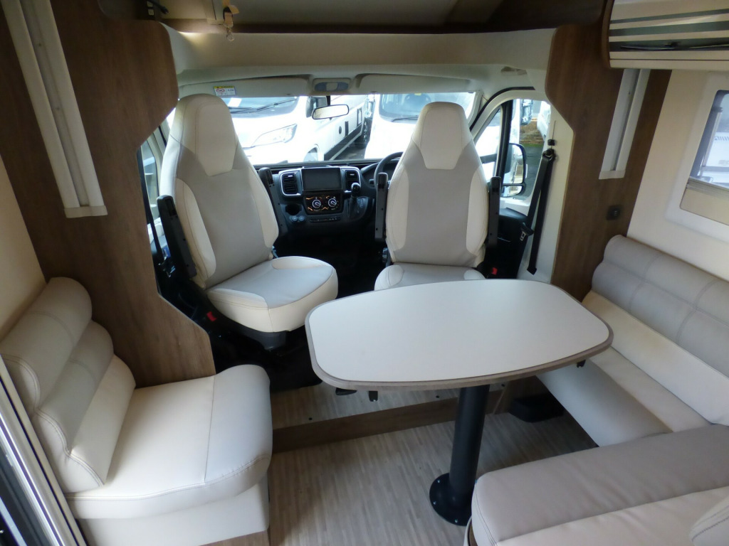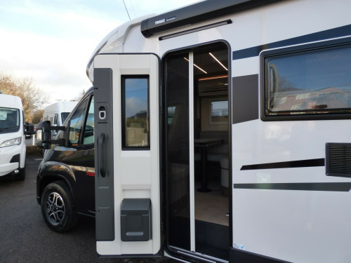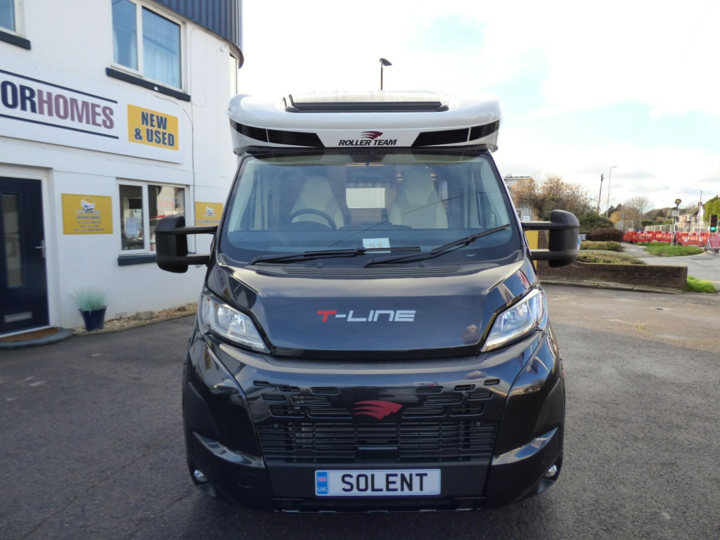 New 2026 Model T-Line 700 in stock now! This revised T-Line model is based on the Fiat Ducato chassis with 140bhp engine and 6 speed manual transmission. Clever design provides two electric elevating beds, one above the front dinette and the other above the U shaped rear lounge providing a generous living area for a sub 7m motorhome. The mid kitchen is fitted with a compressor fridge/freezer, 3 burner gas hob, gas oven and grill and a sink area. Opposite is the bathroom which is a wet room style containing shower cubicle, cassette type toilet and wash hand basin. Heating and hot water are provided by a Truma dual fuel boiler and other features on this T-Line 700 include: Thule wind out awning, Thule 4 bike rack, twin reversing cameras, Twin 200w solar panel with twin lithium leisure batteries, Pioneer Sat Nav, WiFi, External Gas BBQ and shower points, ample cupboard space and pleated cab blinds. L. 6.99m, W. 2.35m, H 2.96m, 3,500kg, 4 berth, 4 seatbelts, delivery miles. wifi, alloy wheels, cab a/c, carpets, external gas bbq point, external shower point, iso fix child seat fixings, pioneer sat nav/infotainment system, pleated cab blinds, reversing camera, thule 4 bike rack, thule awning, twin 200w solar panels with twin mppt controllers, 16'' Alloys