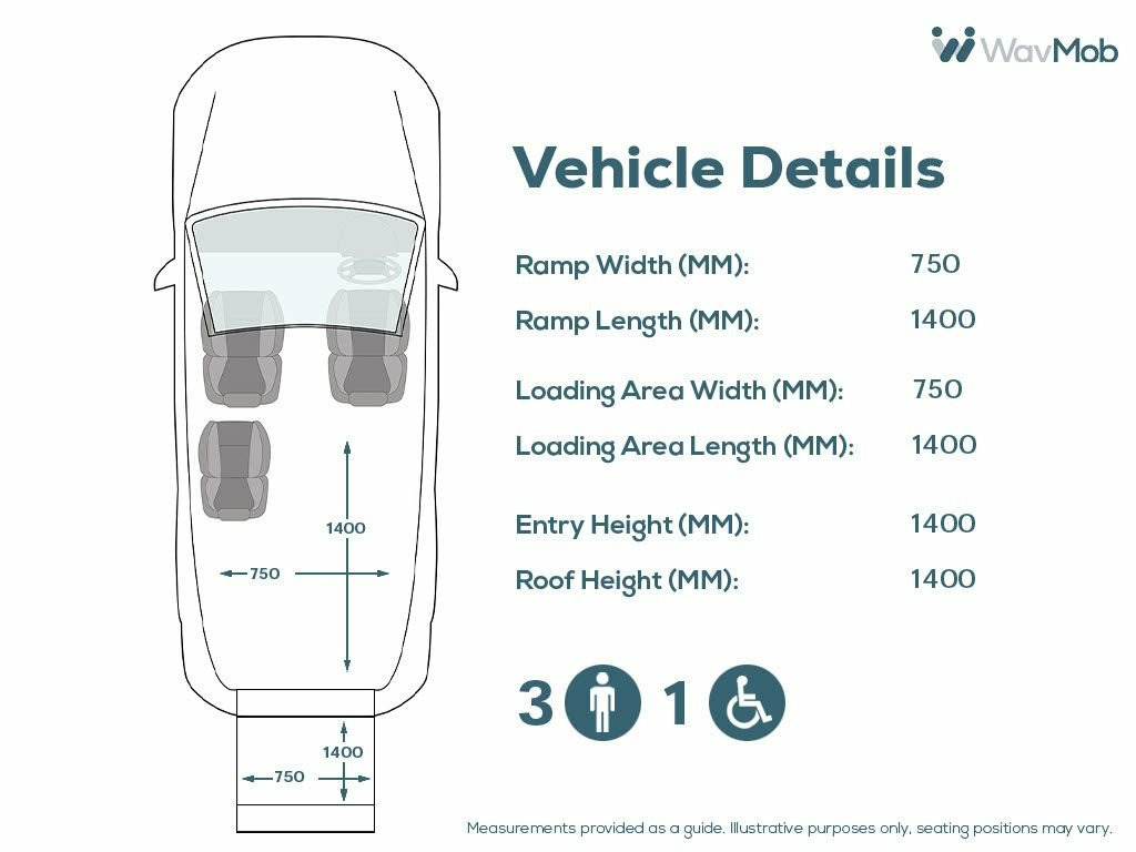 This McElmeel converted Ford Connect Wheelchair Accessible Vehicle (WAV) has 3 Seats (2 Front and 1 Rear). Equipment includes Wheelchair Ramp, Air Conditioning, Electric Front Windows, Electric Adjustable Wing Mirrors, Power Steering, Remote Central Locking, Tinted Rear Windows. Agate Black