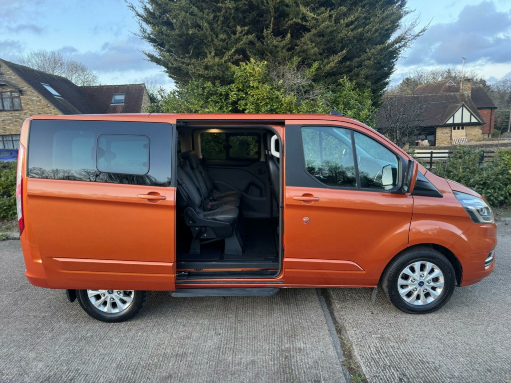 Very rare petrol hybrid only 1former keeper from NEW 8 Seat fULL heated leather seats touchscreen satellite navigation media player Apple CarPlay Bluetooth LED day running lights multifunction steering wheel reversing camera plus parking sensors, air-conditioning alloy wheels sidesteps privacy glass discover the 2020 Ford Tourneo Custom, a versatile and modern vehicle designed for comfort and practicality. This Titanium derivative boasts a 1.0 litre petrol plug in hybrid engine, meeting Euro 6 emission standards, offering an efficient driving experience. It comes equipped with front and rear parking sensors, including parking assistance, to make manoeuvring easier. The cabin features front and rear compartment manual air conditioning, ensuring a pleasant environment for all occupants. Additionally, the door mirrors are fitted with blind spot eliminators and integrated side indicators, enhancing safety and awareness on the road.The Ford Tourneo Custom Titanium is a well appointed choice for those seeking a spacious and capable vehicle. Its plug in hybrid technology signifies a step towards more sustainable motoring, setting it apart from conventional models. The inclusion of advanced parking aids and blind spot assistance further underlines its commitment to driver convenience and safety. This model provides a comfortable and secure journey, making it an excellent option for families or businesses requiring a reliable and feature rich transport solution.HPI clear all debit and credit cards accepted Finance available part exchange welcome ULEZ compliance charging cables available -xenon headlights with led daytime running lights and static bending headlamps, first aid kit, light tinted glass - ilo privacy glass, mud flaps - rear, 16in alloy wheels - 10 spoke, 75mph engine governer, airbag - drivers, airbag - front passengers, airbag - front side and curtain airbags, alternator - standard duty 165amp, anti-lock braking system - abs - with electronic brake-force distribution, assist handle - located on b-pillar, battery - cold start -20 degree c, bottle holder - twin 2 litre bottle capacity - facia-mounted, bumpers - front and rear body colour, carpet floor covering in passenger compartment, courtesy light - footwell illumination - side load door only, courtesy light - header-mounted - front maps lights with theatre dimming, courtesy light - rear seat with theatre dimming, cruise control with adjustable speed limiter, door mirrors - blind spot eliminator and integrated side indicator, door mirrors - body colour skull caps, door mirrors - power-foldable - electrically-operated and heated, doors - drivers and passengers side - sliding glazed doors and steps, dual-circuit front and rear discs with self-adjusting servo-assistance and abs, eba - emergency brake assist, esc - electronic stability control, emergency brake warning, ford easy-fuel capless refuelling system with misfuel inhibit, front - independent macpherson struts - coil springs - stabiliser bar and gas-pressurised shock absorbers - rear - leaf springs and gas-pressurised shock absorbers, front fog lights with static cornering, front grille - 5 bar chrome surround colour, front and rear compartment manual air conditioning, front and rear parking sensors, gearshift knob - leather-trimmed, glazed rear tailgate with wash-wipe, glovebox - with lockable lid, halogen projector headlight with led day running lights, headlights courtesy delay - 30 seconds duration, heater - ptc, hill start assist, ice pack 23, isofix - child seat 4 attachments - drivers and passengers side - 2nd and 3rd row, lac - load adaptive control, load compartment - din 75410 compliant tie-down loops, loadspace compartment lights, locks - audio mislock feedback - audible signal if a door is ajar when locking activated, locks - auto relocking - doors relock after 45 seconds if no door is opened, locks - configurable 2 - stage unlocking, locks - power door deadlocks - shielded with strengthened mountings, locks - remote control central locking with 2 key fobs, mud flaps - front, passive anti-theft system - pats - immobiliser, perimeter anti theft alarm, power assisted steering, power front windows with one-shot up-down, power point socket - 12v - rear, power point socket - 2x 12v, quickclear heated windscreen, rain sensing front wipers and automatic headlights, rear privacy glass, rear seat recline and second row armrests, rear seats - second row - triple single seats - foldable and detachable, rear window - heated, roll stability control and sidewind mitigation, running boards - door length, seatbelts - 3 point diagonal inertia reel - all seats, shift indicator light, side rear window blinds, side windows - second row - flip open, side windows - third row - fixed, spare - full size with tool kit, steering column - rake and reach adjustment, steering wheel - 4-spoke leather trimmed, storage - drivers side - storage compartment on facia top with lift up lid, storage - front door map pockets, sunvisors - illumination of driver and passenger, trip computer, tyre pressure monitoring system - tpms, vehicle identification number - vin - visible, water in fuel filter with sensor