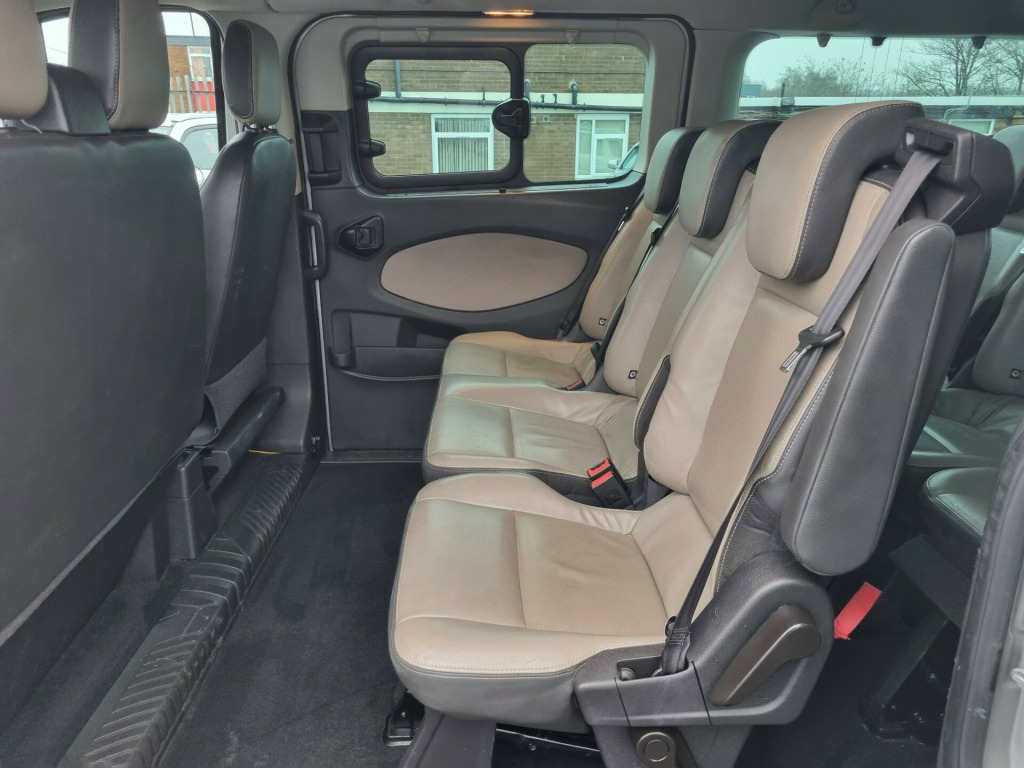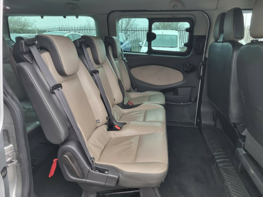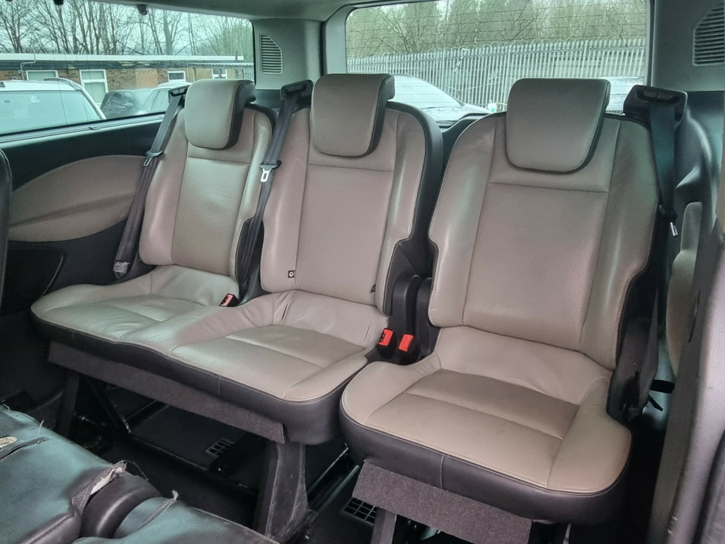rbag - drivers, airbag - front passengers, airbag - front side and curtain airbags, anti-lock braking system - abs - with electronic brake-force distribution, eba - emergency brake assist, esc - electronic stability control, emergency brake warning, ford easy-fuel capless refuelling system with misfuel inhibit, hill start assist, isofix - child seat 3 attachments - centre - second and third row - and drivers side - 2nd row - seats, locks - auto locking on drive-away - doors automatically lock at 5 mph - with crash unlocking disabled, locks - auto relocking - doors relock after 45 seconds if no door is opened, locks - key operated bonnet release, locks - power door deadlocks - shielded with strengthened mountings, locks - remote control central locking with 2 key fobs, passive anti-theft system - pats - immobiliser, perimeter anti theft alarm, rsc - roll stability control, seatbelts - 3 point diagonal inertia reel - all seats, side wind stabilisation, traction control - tc, trailer sway control, vehicle identification number - vin - visible, wipers - rear with auto reverse wipe and electrically-operated wash, alloy wheels - 6.5 x 16, bodyside mouldings - body colour, bumper - body colour front bumper, bumper - body colour rear bumper, door handles - body colour, door mirrors - blind spot eliminator and integrated side indicator, door mirrors - body colour skull caps, doors - glazed rear liftgate with wash-wipe, electrically operated and heated power foldable door mirrors with body colour housing, electrically-operated front windows with one-shot up-down on drivers side, liftgate handle - body colour, mini spare wheel, mud flaps - front, quickclear heated windscreen, rear privacy glass, rear window - heated, side step - door length, side windows - second row - flip open, side windows - third row - fixed, assist handle - located on b-pillar, bottle holder - twin 2 litre bottle capacity - facia-mounted, courtesy light - footwell illumination, courtesy light - header-mounted - front maps lights with theatre dimming, courtesy light - rear seat with theatre dimming, cup holder - twin - facia-mounted - in base, doors - drivers and passengers side - sliding glazed doors and steps, drivers seat - 10-way heated with armrest, floor covering - carpet, front air conditioning with pollen filter, front passengers seat - single - 10-way heated with armrest, gearshift knob - leather-trimmed, glovebox - with lockable lid, heater - recirculation, interior lighting - battery saver - 30min, lac - load adaptive control, load compartment - din 75410 compliant tie-down loops, loadspace compartment lights, locks - audio mislock feedback - audible signal if a door is ajar when locking activated, locks - configurable locking pack 2 - 2-stage unlocking, rain sensing front wipers and automatic headlights, rear compartment manual air conditioning, rear seat recline and second row armrests, rear seats - second row - triple wide seats - 2+1 - foldable and detachable, rear seats - third row - triple wide seats - 2+1 - foldable and detachable, side rear window blinds, steering column - rake and reach adjustment, steering wheel - 4-spoke leather trimmed, storage - centre stack-mounted car park - toll ticket holder, storage - drivers side - storage compartment on facia top with lift up lid, storage - front door map pockets, cruise control, ford eco mode - driver information system, front - independent macpherson struts - coil springs - stabiliser bar and gas-pressurised shock absorbers - rear - leaf springs and gas-pressurised shock absorbers, gearshift indicator light, heater - ptc, parking distance sensors - front and rear, power assisted steering, standard duty battery - single agm 80ah - 800cca, trip computer, tyre pressure monitoring system - tpms, water in fuel filter with sensor, fog lights - front, headlights - automatic on-off, headlights - day time running lights, headlights - projector style halogen reflector lights with chrome background and static cornering lights, headlights courtesy delay - 30 seconds duration, ford dab audio system with sync and applink - ice pack 9, power point socket - 12v - rear, power point socket - 2x 12v