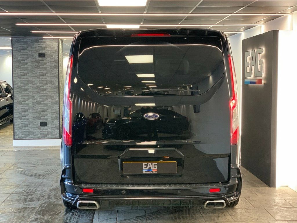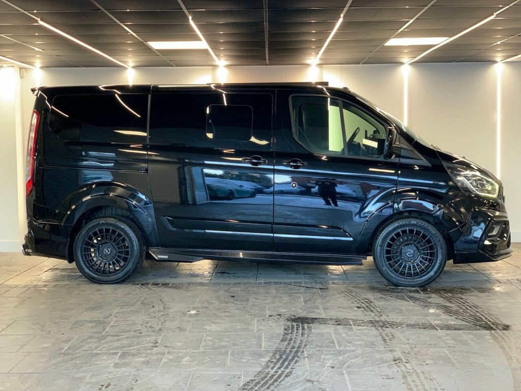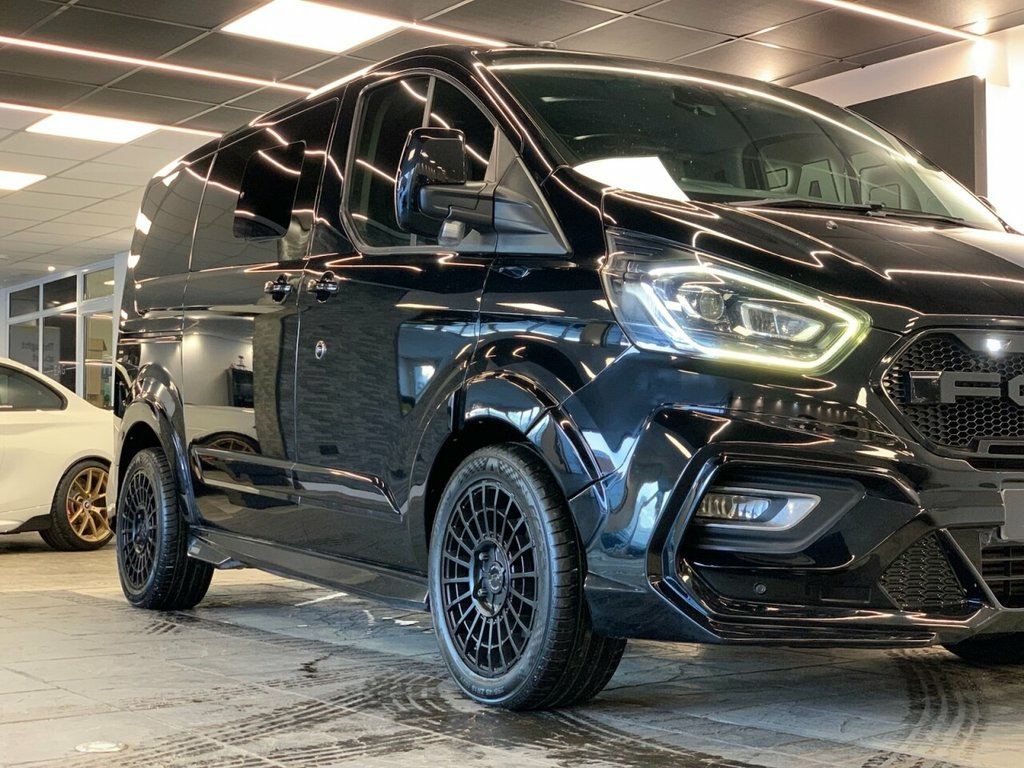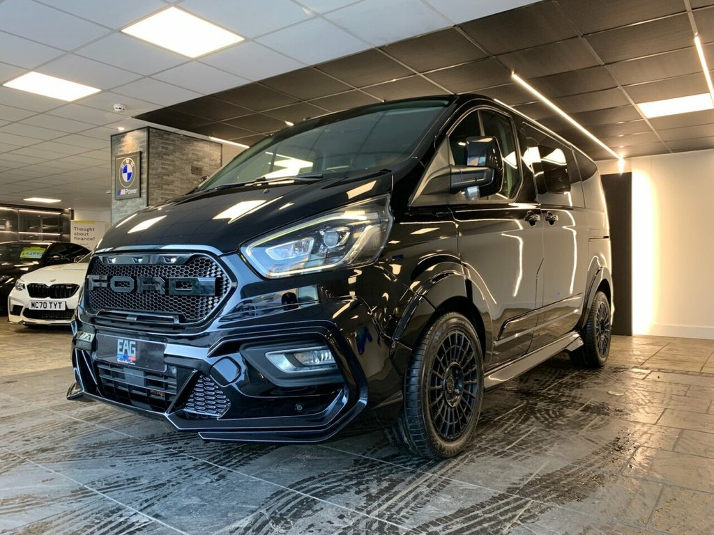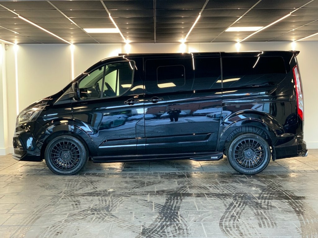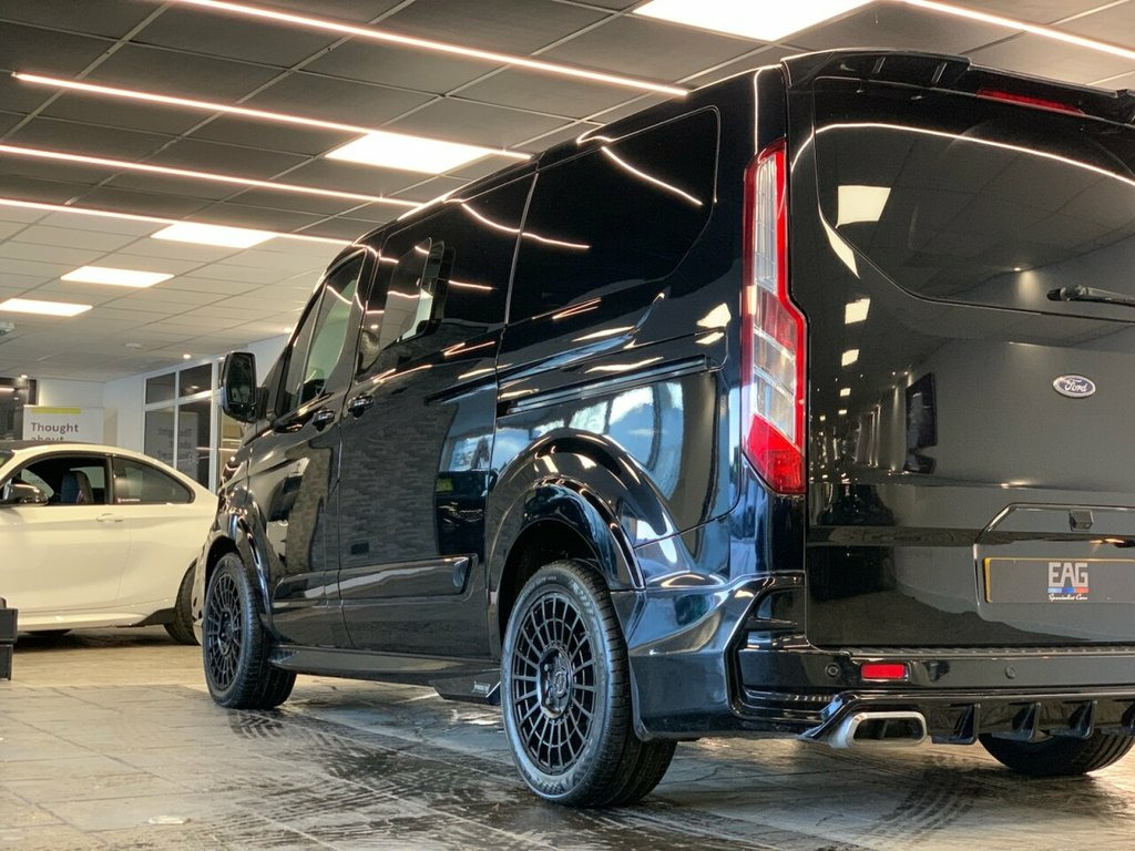 2018 (68) FORD TOURNEO CUSTOM MINIBUS DOUBLE CAB Finished in Black with Black Leather interior and RAM Edition wheels. This example also includes starlight headliners, Predator body-kit and the full rear cab seat conversion. Factory spec includes; reversing camera, front and rear park distance control, adaptive cruise control, lane assist, adaptive LED headlights, fully electric and heated front seats, apple carplay and android auto, DAB radio and Bluetooth connectivity. 2 owners. Finance available from 9.9% 17in Alloy Wheels - 10 Spoke Silver, Airbag - Drivers, Airbag - Front Passengers, Airbag - Front Side and Curtain Airbags, Alternator - Standard Duty 165Amp, Anti-Lock Braking System - ABS - with El, Assist Handle - Located on B-pillar, Battery - Cold Start -20 Degree C, Body Colour Door and Tailgate Handles, Bodyside Mouldings - Body Colour, Bottle Holder - Twin 2 litre Bottle Capa, Bumpers - Front and Rear Body Colour, Carpet Floor Covering in Passenger Compa, Courtesy Light - Footwell Illumination -, Courtesy Light - Header-Mounted - Front , Courtesy Light - Rear Seat with Theatre , Cruise Control with Adjustable Speed Lim, Door Mirrors - Blind Spot Eliminator and, Door Mirrors - Body Col