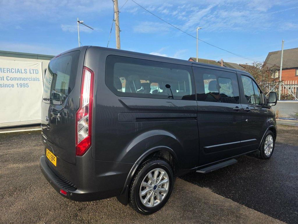 FORD TRANSIT CUSTOM 2.0 310 ECOBLUE TITANIUM MINIBUS LWB, 2022 72 REG, Grey, electric windows, electric folding mirrors, air conditioning, heated front seats, DAB digital radio, Bluetooth telephone/ media, multifunctional steering wheel, cruise control, park assist, 74495 miles, MOT, 1 Company Owner. All our vehicles are fully serviced prior to collection, for more information please visit www.pjcommercial.com 17in Alloy Wheels, 2 Fob Keys, Airbag - Drivers, Airbag - Front Passengers, Airbag - Front Side and Curtain Airbags, Anti-Lock Braking System - ABS - with El, B Pillar Assist Handle, Battery - Cold Start -20 Degree C, Body Colour Door and Tailgate Handles, Body Coloured Exterior Mirror Finish, Bodyside Mouldings - Body Colour, Bottle Holder - Twin 2 litre Bottle Capa, Bumpers - Front and Rear Body Colour, Colour Keyed Exterior Pack, Complete Carpet Inside Floor Covering, Courtesy Light - Footwell Illumination -, Courtesy Light - Header-Mounted - Front , Courtesy Light - Rear Seat with Theatre , Door Mirrors - Blind Spot Eliminator and, Door Mirrors - Power-Foldable - Electric, Doors - Driver