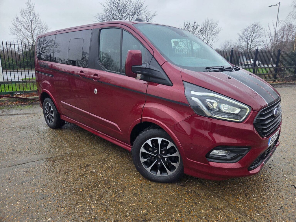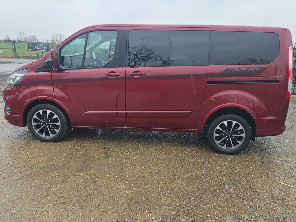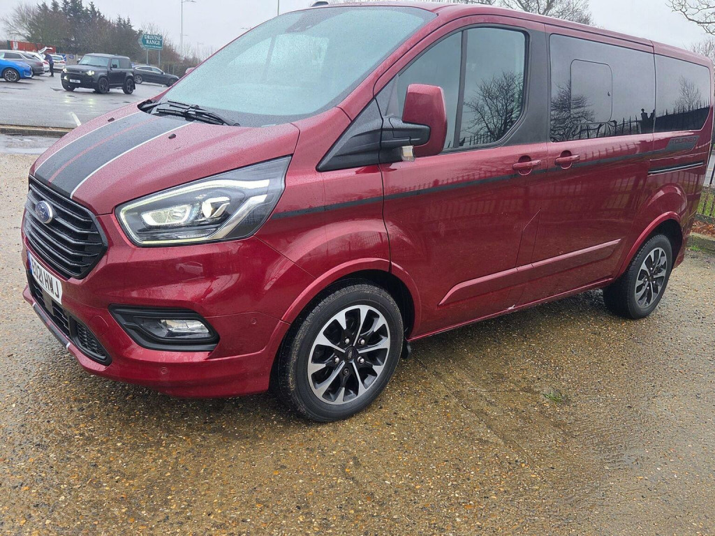 8 seater - 8k spent recently at ford new engine and fuel dpf system - Discover this 2021 Ford Tourneo Custom, a 2.0 320 EcoBlue Sport Auto L1 Euro 6 (s/s) 5dr, presented in the desirable Sport trim. This versatile vehicle is powered by a robust 2.0 litre diesel engine, delivering an impressive 182 bhp. It comes equipped with a suite of advanced features designed to enhance your driving experience, including Lane Keeping Alert with automatic headlights, a rear view camera with trailer hitch assist for effortless parking and towing, and ICE Pack 25 which incorporates adaptive cruise control. For your comfort, it boasts front and rear compartment manual air conditioning, and the door mirrors feature blind spot eliminators and integrated side indicators for added safety. This Tourneo Custom is designed for efficiency and performance, achieving a notable fuel economy of 39 mpg. These highlights demonstrate how this vehicle offers a superior driving experience compared to others in its class. The Euro 6 emission standard ensures it meets current environmental regulations, making it a responsible choice. The combination of its powerful engine, advanced safety and convenience features, and excellent fuel economy makes this Ford Tourneo Custom a compelling option for those seeking a capable and well equipped vehicle.