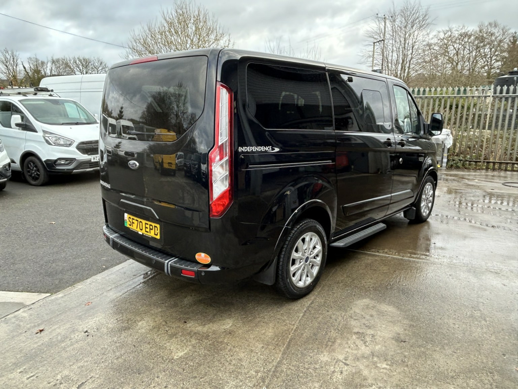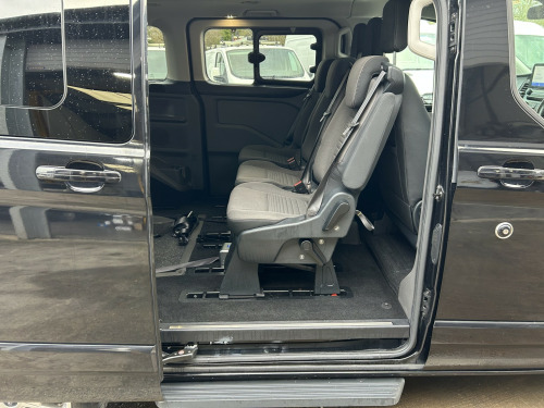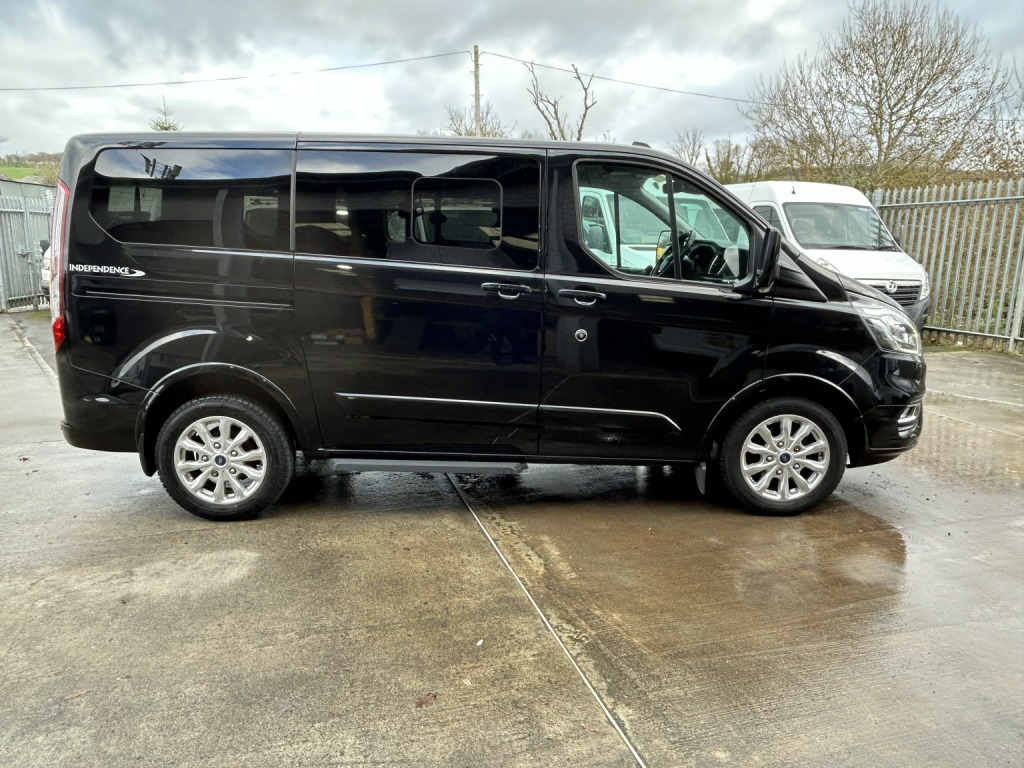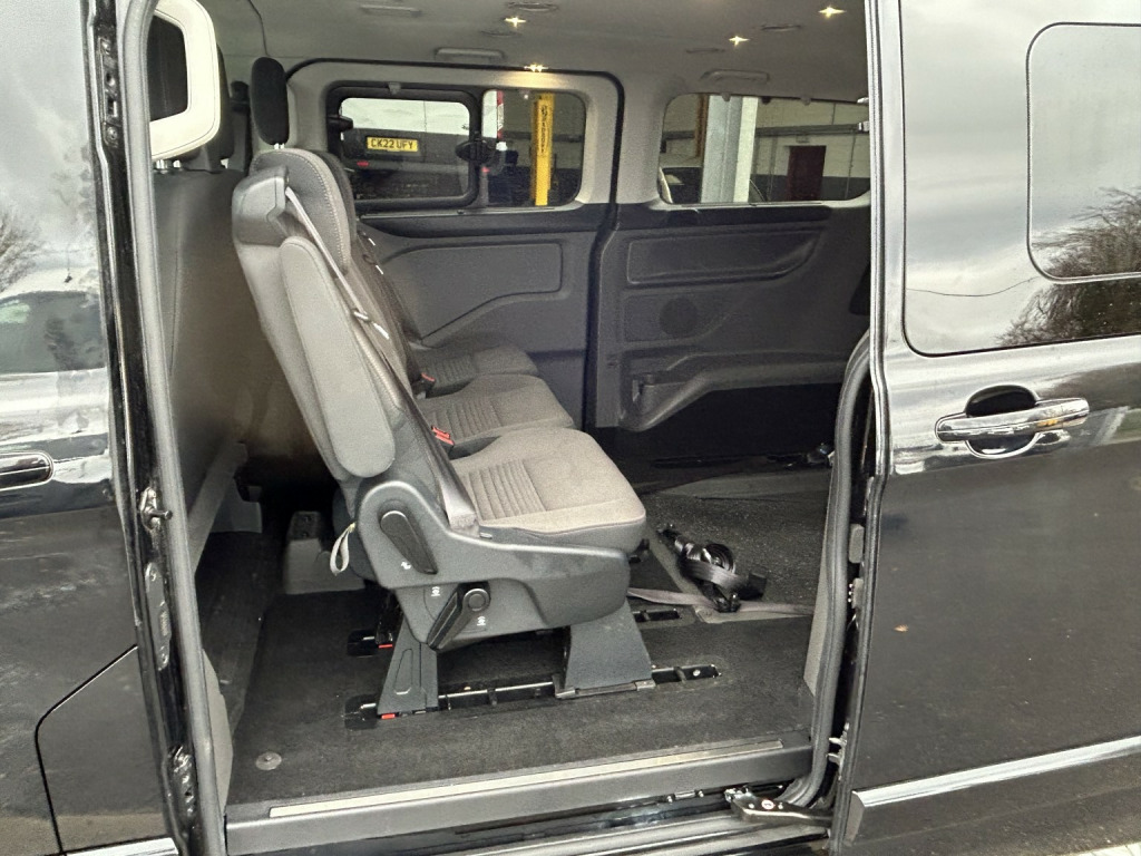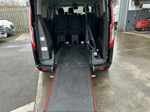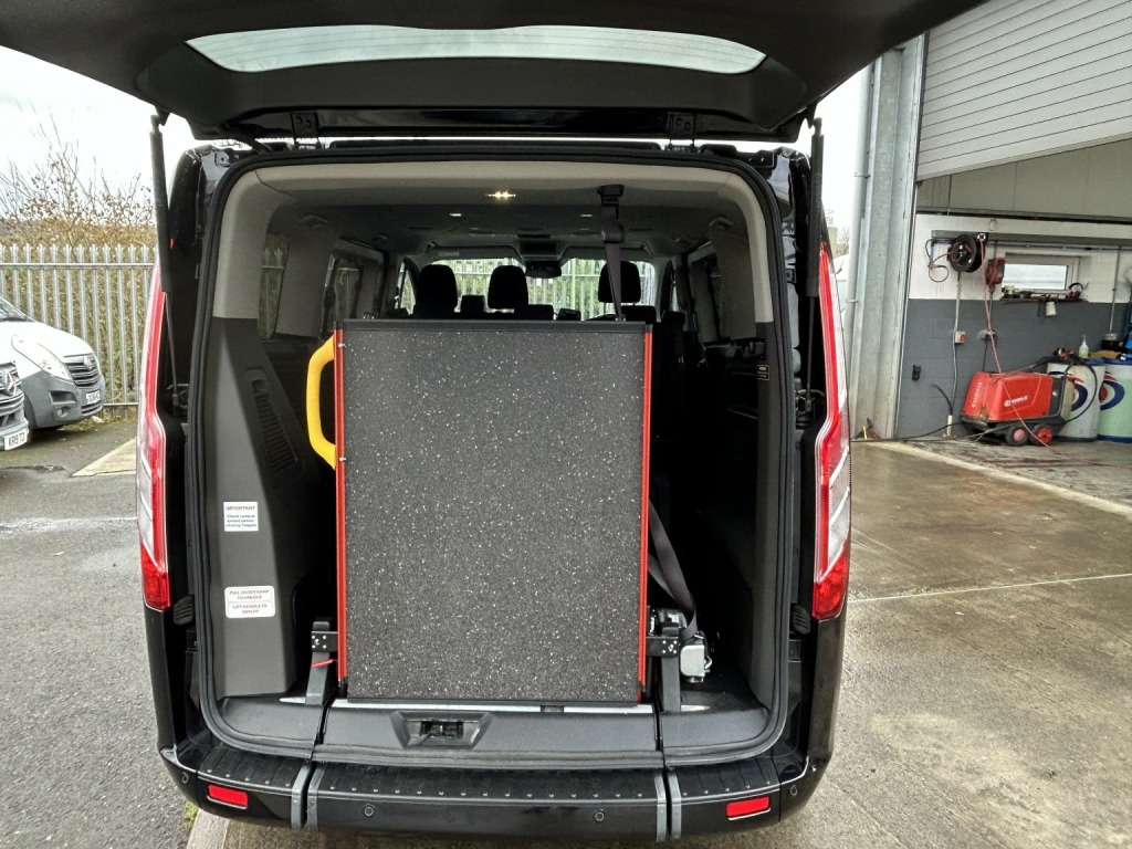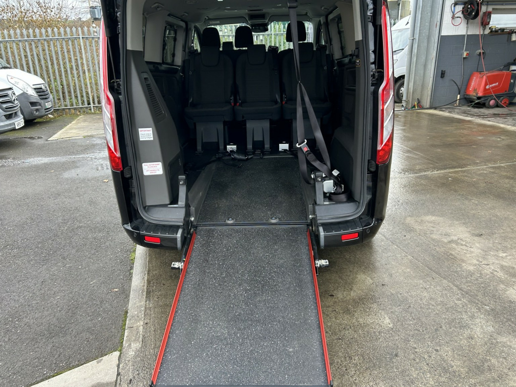 Ford Tourneo Custom 2.0 320 130 BHP Titanium WHEELCHAIR ACCESS 6 SEAT CREW NO VAT finished in Black (Manual), 25700 miles, 1 Previous Owner, Service History, Just Been Serviced and Wet Belt Changed, 2.0 TDCI 130 BHP, 6 Speed Manual Gearbox, Euro 6, 6 Seater Wheelchair Disabled Accessible Ramp, Twin Sliding Doors, Short wheelbase Low roof, PAS, Service indicator, Air Conditioning, Trip computer, DAB Radio, Front electric windows, ABS, Drivers airbag, Remote central locking, Parking Sensors, Cloth seat trim, Alloy Wheels, Privacy Glass, Rear Tailgate