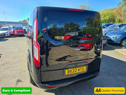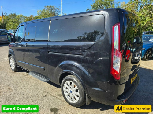 This 2022 Ford Tourneo Custom 320 Titanium is a superb example, having been owned by just one careful keeper. It boasts a powerful and efficient 2.0L diesel engine, meeting Euro 6 emissions standards, and offers comfortable seating for up to eight occupants. The vehicle is in excellent condition, with its MOT valid until March 2026, providing peace of mind for its next owner. Key features include front manual air conditioning for a pleasant cabin environment, front and rear parking aids to assist with manoeuvring, and a Visibility Pack High with automatic headlights for enhanced driving awareness. Additionally, the door mirrors are equipped with blind spot eliminators and integrated side indicators, further improving safety. The Titanium trim level signifies a high specification, and this Tourneo Custom is no exception. The inclusion of features like the blind spot assistance and automatic headlights demonstrates a commitment to driver convenience and safety, setting it apart from many other vehicles in its class. This spacious and versatile people carrier is ideal for families or businesses needing reliable and comfortable transport, offering a refined driving experience with its well appointed interior and advanced features. 17in Alloy Wheels, 2 Fob Keys, Active Park Assist, Airbag - Drivers, Airbag - Front Passengers, Airbag - Front Side and Curtain Airbags, Anti-Lock Braking System - ABS - with El, B Pillar Assist Handle, Battery - Cold Start -20 Degree C, Body Colour Door and Tailgate Handles, Body Coloured Exterior Mirror Finish, Bodyside Mouldings - Body Colour, Bottle Holder - Twin 2 litre Bottle Capa, Bumpers - Front and Rear Body Colour, Colour Keyed Exterior Pack, Complete Carpet Inside Floor Covering, Courtesy Light - Footwell Illumination -, Courtesy Light - Header-Mounted - Front , Courtesy Light - Rear Seat with Theatre , Door Mirrors - Blind Spot Eliminator and, Door Mirrors - Power-Foldable - Elec