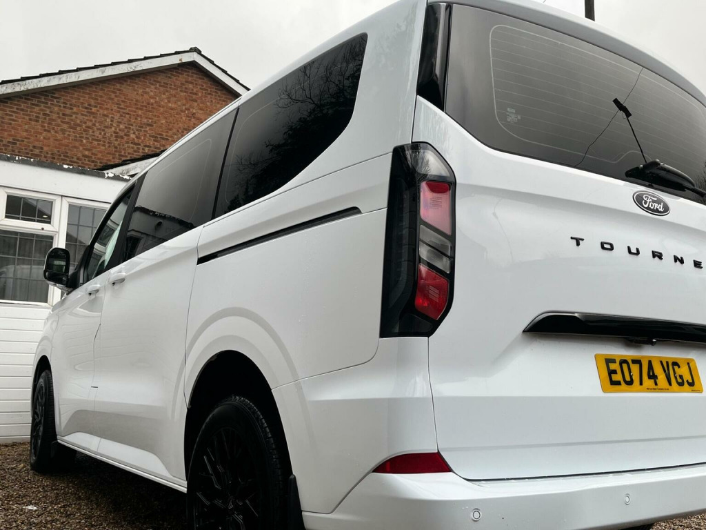 this has been repaired to the highest standard by a BS approved repairer with photos before and after , 8 seats just 9700 miles Boasting exceptionally low mileage for its age, this 2024 Ford Tourneo Custom 2.0 320 EcoBlue Zetec L1 Euro 6 (s/s) 5dr presents a superb opportunity. This 320 Zetec model, finished in Zetec trim, is powered by an efficient 2.0 litre diesel engine delivering 134 bhp and meeting Euro 6 emission standards. It comes equipped with the valuable Navigation Pack, including Blind Spot Assistance and Adaptive Cruise Control, alongside a Keyless Entry and Start System and striking Fixed DSS LED Headlamps with Automatic High Beam functionality. Comfort is further enhanced by the Automatic Air Conditioner. This Tourneo Custom offers impressive fuel economy, achieving a highlight of 38 mpg, and also boasts low CO2 emissions, indicating its environmental consideration compared to similar vehicles. The low mileage of just 9700 miles means this vehicle has seen very little use, offering you a near new experience with the benefits of a pre registered vehicle.