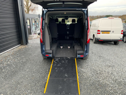 This 2018 Ford Tourneo Custom 2.0 320 EcoBlue Zetec Minibus Double Cab with 58000 miles on the clock is a reliable Diesel vehicle that boasts 5seats plus wheelchair , 5 doors, and is ULEZ compliant. With an MOT that expires on 09/01/2027, this Minibus is a practical choice for larger families or businesses. The vehicle is equipped with 16in Alloy Wheels, Bumpers in Front and Rear Body Colour, Door Mirrors with Blind Spot Eliminator and Integrated Side Indicator, as well as Power-Foldable and Electrically-Operated Heated Door Mirrors and Glazed Rear Tailgate with Wash-Wipe. This spacious and efficient Minibus offers practicality and comfort for all passengers while being Euro 6 (s/s) compliant and capable of performing at its best. in alloy wheels - 10 spoke, bumpers - front and rear body colour, door mirrors - blind spot eliminator and integrated side indicator, door mirrors - power-foldable - electrically-operated and heated, glazed rear tailgate with wash-wipe, mud flaps - front, power front windows with one-shot up-down, quickclear heated windscreen, rear privacy glass, rear window - heated, running boards - door length, side windows - second row - flip open, side windows - third row - fixed, spare - full size with tool kit, airbag - drivers, airbag - front passengers, airbag - front side and curtain airbags, anti-lock braking system - abs - with electronic brake-force distribution, dual-circuit front and rear discs with self-adjusting servo-assistance and abs, eba - emergency brake assist, esc - electronic stability control, emergency brake warning, ford easy-fuel capless refuelling system with misfuel inhibit, hill start assist, isofix - child seat 3 attachments - centre - second and third row - and drivers side - 2nd row - seats, locks - auto locking on drive-away - doors automatically lock at 5 mph - with crash unlocking disabled, locks - auto relocking - doors relock after 45 seconds if no door is opened, locks - key operated bonnet release, locks - power door deadlocks - shielded with strengthened mountings, locks - remote control central locking with 2 key fobs, passive anti-theft system - pats - immobiliser, roll stability control and sidewind mitigation, seatbelts - 3 point diagonal inertia reel - all seats, vehicle identification number - vin - visible, wipers - rear with auto reverse wipe and electrically-operated wash, alternator - standard duty 165amp, battery - cold start -20 degree c, cruise control with adjustable speed limiter, ford eco mode - driver information system, front - independent macpherson struts - coil springs - stabiliser bar and gas-pressurised shock absorbers - rear - leaf springs and gas-pressurised shock absorbers, front and rear parking sensors, heater - ptc, power assisted steering, shift indicator light, standard duty battery - single agm 80ah - 800cca, trip computer, tyre pressure monitoring system - tpms, water in fuel filter with sensor, assist handle - located on b-pillar, bottle holder - twin 2 litre bottle capacity - facia-mounted, carpet floor covering in passenger compartment, courtesy light - footwell illumination - side load door only, courtesy light - header-mounted - front maps lights with theatre dimming, courtesy light - rear seat with theatre dimming, doors - drivers and passengers side - sliding glazed doors and steps, front air conditioning with pollen filter, gearshift knob - leather-trimmed, glovebox - with lockable lid, heater - recirculation, interior lighting - battery saver - 30min, lac - load adaptive control, load compartment - din 75410 compliant tie-down loops, loadspace compartment lights, locks - audio mislock feedback - audible signal if a door is ajar when locking activated, locks - configurable 2 - stage unlocking, rain sensing front wipers and automatic headlights, rear seat recline and second row armrests, rear seats - second row - triple wide seats - 2+1 - foldable and detachable, rear seats - third row - triple wide seats - 2+1 - foldable and detachable, steering column - rake and reach adjustment, steering wheel - 4-spoke leather trimmed, storage - drivers side - storage compartment on facia top with lift up lid, storage - front door map pockets, front fog lights with static cornering, halogen projector headlight with led day running lights, headlights courtesy delay - 30 seconds duration, ice pack 18, power point socket - 12v - rear, power point socket - 2x 12v