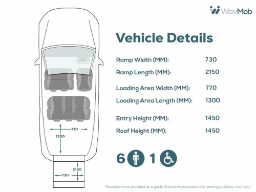 This Allied Mobility converted Ford Transit Custom Wheelchair Accessible Vehicle (WAV) has 6 Seats (3 Front and 3 Rear). Equipment includes Wheelchair Ramp, Electric Winch, Air Conditioning, Electric Front Windows, Electric Adjustable Wing Mirrors, Power Steering, Remote Central Locking, Tinted Rear Windows. The Timing Belt (Wet Belt) will be changed prior to purchase.