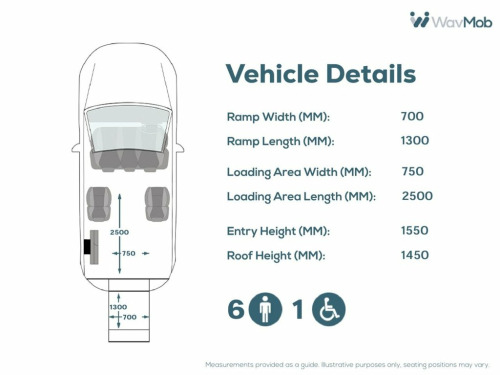 This Allied Mobility converted Ford Transit Custom Wheelchair Accessible Vehicle (WAV) has 5 Seats (3 Front and 2 Rear). Equipment includes Wheelchair Ramp, Electric Winch, Air Conditioning, Electric Front Windows, Electric Adjustable Wing Mirrors, Power Steering, Remote Central Locking, Tinted Rear Windows.