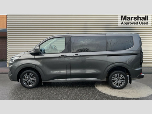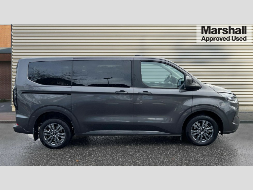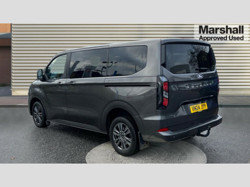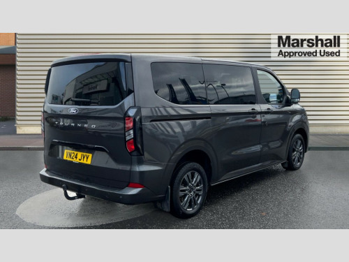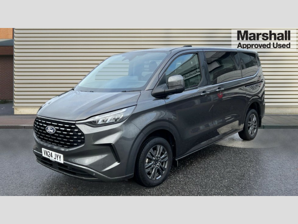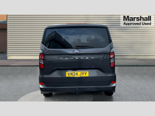 Ford Tourneo Custom 2.0 EcoBlue 136ps H1 Titanium 8 seater Auto 13" Touchscreen, 5G embedded modem, Blind spot assist, Front and rear parking aids, Intelligent Speed Assist, Lane keeping aid includes lane keeping alert, PAS, Pre collision assist, Speed sign recognition, Trip computer, Tyre pressure monitor, Voice control system, Wrong way alert, Audio controls mounted on steering wheel, Aux input socket, SYNC 4 - Android Auto/Apple Car Play,advance speech recognition,over the air update capability, 3rd Row left and right fixed windows, Automatic windscreen wipers, Body colour front bumper, Body colour rear bumpers, Body coloured exterior mirrors, Daytime running lights, Fixed DSS LED headlamps with auto high headlamp, Fixed rear window, Front splash guard, Heated door mirrors, Low roof line, Medium duty towing, Power front windows with one shot up/down, Privacy glass, Quick clear front windshield defroster, Rear cargo liftgate door, Rear splash guard, Rear window defroster, Sun blinds, Trans linked washer/wiper, 2 Load compartment tie down loops, Coat hook, Comfort seat, Driver and passenger storage bins on facia with lids, Facia mounted tray with pen holder and cupholders, Front door map pockets, Full moulded headlining, Header courtesy lights, Height adjustable head restraints, Illuminated footwell, Interior grab handles with driver's sunglasses holder, Isofix child seat attachments - centre and offside 2nd row seats, Leather gearknob, LED load compartment lighting, Lockable glove box lid, Map reading lights, Passenger sunvisor, Passengers side open storage, Rear armrest, Rear reading light, Reclining rear seats, Tool kit, Twin bottle holders, 3 point seatbelts for all seats, Black seat belt, Curtain airbags, Driver and passenger seatbelt reminder, Driver's airbag, Front seatbelt pretensioners, Passenger airbag with deactivation switch, 2 remote keys, Alcohol interlock, Locking configuration 2, Locking wheel lug nut, Non-swivel driver seat, Non-swivel passenger seat, Remote central locking, Speed dependant locking, Stolen vehicle recovery system, Thatcham category 1 alarm with power door deadlocks, Two step door unlock system, 20L AdBlue tank, ABS, Alternator - 150A, Battery saver, Diesel particulate filter, ESP, Power socket in drivers stowage bin, Rear auxilliary power point socket, Rear power point plug, Roll stability control, Side wind mitigation, 16" Steel spare wheel