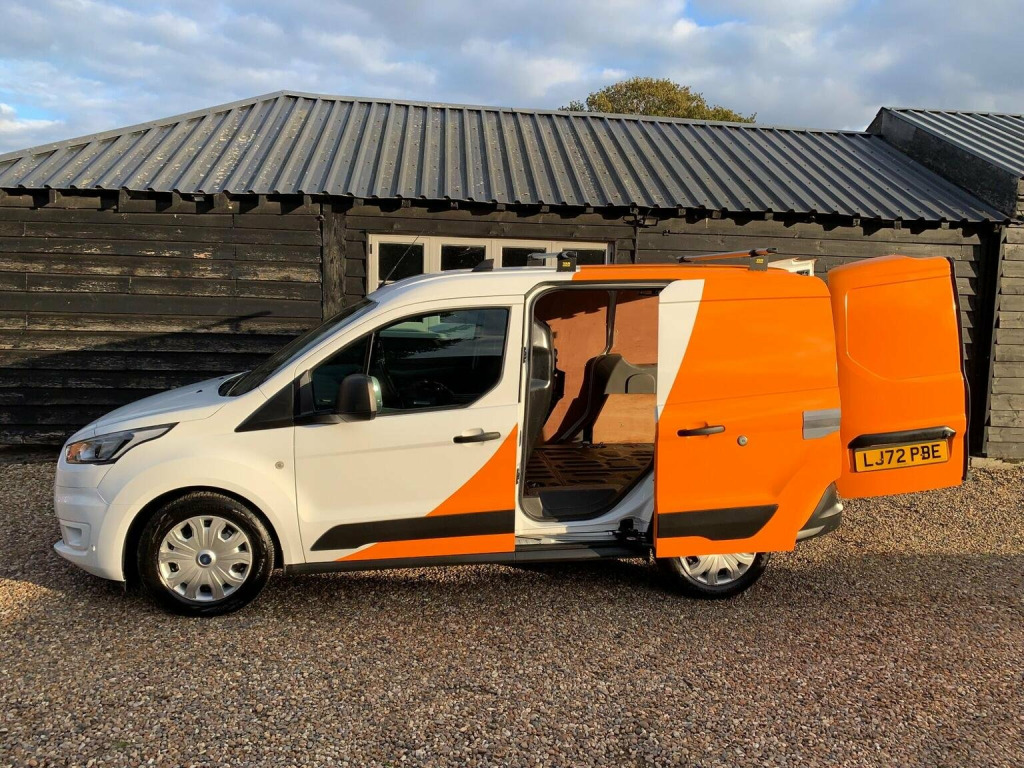 This 2023 Ford Transit Connect boasts a full dealership service history, with its last service completed on 2025-01-13 at 37,736 miles, and has had only one owner. This 1.0 litre EcoBoost Trend L1 Euro 6 (s/s) 5dr model, a 210 Trend variant, is equipped with a 1.0L petrol engine and meets Euro 6 emissions standards. Notable features include front and rear parking aids with parking assistance sensors and a rear camera, dual zone automatic air conditioning for personalised comfort, and automatic headlamp control. The ICE Feature Pack 10 adds convenience with Android Auto, Apple CarPlay, and Bluetooth connectivity. A 3 month warranty is included for your peace of mind. The Transit Connect Trend offers a refined driving experience, enhanced by its comprehensive parking assistance systems which make manoeuvring in tight spaces considerably easier than many similar vehicles. The inclusion of dual zone automatic climate control ensures all occupants can enjoy their preferred temperature, a feature that sets it apart. Furthermore, the seamless integration of Android Auto and Apple CarPlay via the ICE Feature Pack 10 provides effortless access to your favourite apps and navigation, demonstrating a superior level of in car technology. The van also comes with roof Rack, Seat covers that have been on from new so seats underneath are in excellent condition. The back half of the van is wrapped in orange this can be removed prior to sale if not required. All our vehicles come with a minimum of 3 Months RAC warranty with options to extend to 6, 12, or 24 months. 12 Months breakdown is also included free of charge. Part Exchange welcome. Viewing by appointment only please call to arrange.