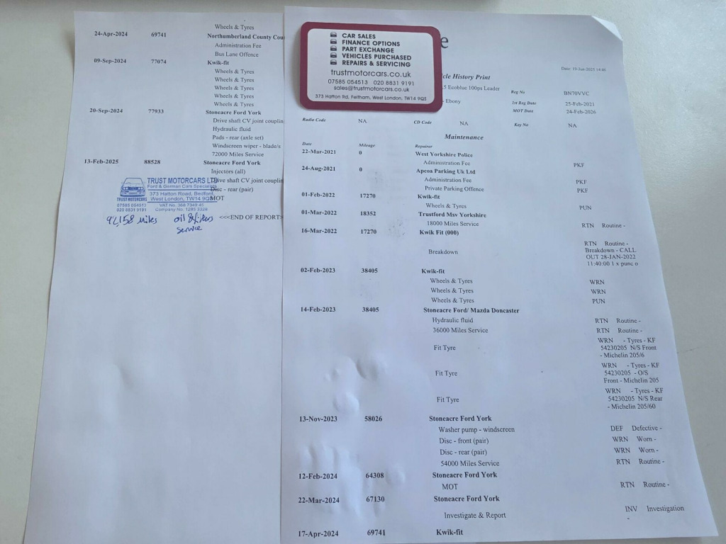 We are delighted to present this wonderful Ford Transit Connect, which is in fantastic condition. This example has had only ONE OWNER FROM NEWa large organisation that has regularly maintained the van, as reflected in its excellent internal and external condition.This lovely van comes with:FULL SERVICE HISTORY (Full extensive service/maintenance records present)TWO SETS OF KEYSA long MOTA recent full service, including:Engine oil removed and replacedEngine oil filter removed and replacedAir filter removed and replacedThe internal and external condition of the van is very good for its age and mileage. You can judge for yourself by looking at the images and video (larger versions available on our website: trustmotorcars.co.uk)or better yet, come and see it in person!Please get in touch if you'd like to arrange a viewing or have it delivered directly to your door. You'll find more images of this vehicle and many others on our website.Part exchange welcome.-GUARANTEED MOT: We will provide a new MOT if the current one is close to expiry-AFFORDABLE FINANCE OPTIONS AVAILABLE - Please contact us for details-THREE-MONTH WARRANTY INCLUDED-OPTIONAL EXTENDED AA WARRANTY AVAILABLE-MORE PHOTOS AND VIDEOS AVAILABLE ON OUR WEBSITE: trustmotorcars.co.uk-PART EXCHANGE WELCOME-We are conveniently located next to Heathrow Airport, just minutes from M25 J14, M4, M40, M3, and A312-Nationwide delivery available r conditioning - manual, reverse parking aid, perimeter anti theft alarm, led loadspace lighting, racer cloth - ebony, 12v and aux power point in instrument panel, 16in steel wheels with centre caps, 1x remote key and 1x plain key, 2-speed variable intermittent front wipers, 4-way drivers seat - fore-aft and recline adjustment, abs-ebd-esc, active shutter grille, airbags - driver, bulkhead - full steel, configurable locking 1, courtesy lights - front dome, din cargo tie downs, daytime running lamps, door handles - interior - black, door handles - self colour, door mirrors - self colour housing, door and liftgate handles - self colour, driver seat belt minder, driver and passenger sunvisors, dual cup holder, epas - electric power assisted steering, ecoselect function, emergency brake warning, engine immobiliser, ford easy-fuel capless refuelling system, front grille - 3 bar - self colour, front lip spoiler, front and rear towing hooks, gearshift knob - polyurethane, halogen headlights - side lights - rear fog lights - reversing lights, heavy duty battery - 80ah, high mounted brake light, hill start assist, ice feature pack 2, interior grab handles - front, load box light, locks - auto relocking - doors relock after 45 seconds if no door is opened, manual slim wing-mirrors, overhead storage shelf, power door deadlocks - double locking, power windows - driver - one touch down, rake and reach steering adjustable, rear cargo door - unglazed, rear fog lamps, remote central-double locking, roof mounted microphone, seat belts - front - 3 point with seat pre-tensioner - height adjust and load limiters, seat pack 1, security - passive anti-theft system - pats, single passenger seat centre console, single side load door - kerbside, spare wheel - steel, standard duty alternator, steering wheel - 4 spoke pu with black shells, steering wheel radio controls, storage box - instrument panel, trip computer, twistbeam, wide bodyside mouldings - self colour