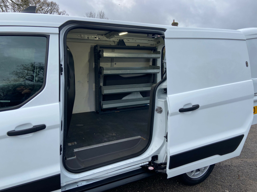 2021 ' 70 ' FORD TRANSIT CONNECT 1.5 TDCI 100 240 TREND L2 IN WHITE , ULEZ COMPLIANT , 1 OWNER , FULL SERVICE HISTORY , 81000 MILES , PAS , ABS , AIR CONDITIONING , BLUETOOTH , HEATED SCREEN , ELECTRIC HEATED MIRRORS , FRONT FOG LIGHTS , ELECTRIC WINDOWS , FRONT AND REAR PARKING SENSORS , ALLOY WHEELS , INTERNAL RACKING + MORE , FULL FINANCE FACILITIES AVAILABLE **** £9995 + VAT ****, v and aux power point in instrument panel, audio system with 4.2in screen, fordpass connect, roof mounted microphone, 16in steel wheels with full wheel covers, door handles - self colour, door mirrors - self colour housing, door and liftgate handles - self colour, front bumper - body colour, front grille - 3 bar - self colour, front lip spoiler, front and rear towing hooks, power door mirrors - heated, power windows - driver - one touch down, quickclear heated windscreen, rear bumper - self colour, rear bumper end caps - body colour, spare wheel - steel, wide bodyside mouldings - self colour, 1x remote key and 1x plain key, abs-ebd-esc, airbags - driver, configurable locking 1, driver seat belt minder, eba - emergency brake assist, emergency brake warning, engine immobiliser, ford easy-fuel capless refuelling system, hill start assist, locks - auto relocking - doors relock after 45 seconds if no door is opened, power door deadlocks - double locking, remote central-double locking, seat belts - front - 3 point with seat pre-tensioner - height adjust and load limiters, security - passive anti-theft system - pats, 2-speed variable intermittent front wipers, 8-way driver seat with fore-aft - recline - height and lumbar adjustment, bulkhead - full steel, courtesy lights - front dome light with 2 map lights, din cargo tie downs, door handles - interior - black, driver and passenger sunvisors, dual cup holder, easy clean load floor, gearshift knob - polyurethane, glove box with lid, interior grab handles - front, load box light, overhead storage shelf, plastic cargo floor liner, rake and reach steering adjustable, rear cargo door - unglazed, rear fog lamps, seat pack 4, single passenger seat centre console, single side load door - kerbside, steering wheel - 4 spoke pu with black shells, steering wheel radio controls, storage box - instrument panel, active shutter grille, epas - electric power assisted steering, heavy duty battery - 80ah, standard duty alternator, trip computer, twistbeam, daytime running lamps, front fog lights, halogen headlights - side lights - rear fog lights - reversing lights, high mounted brake light