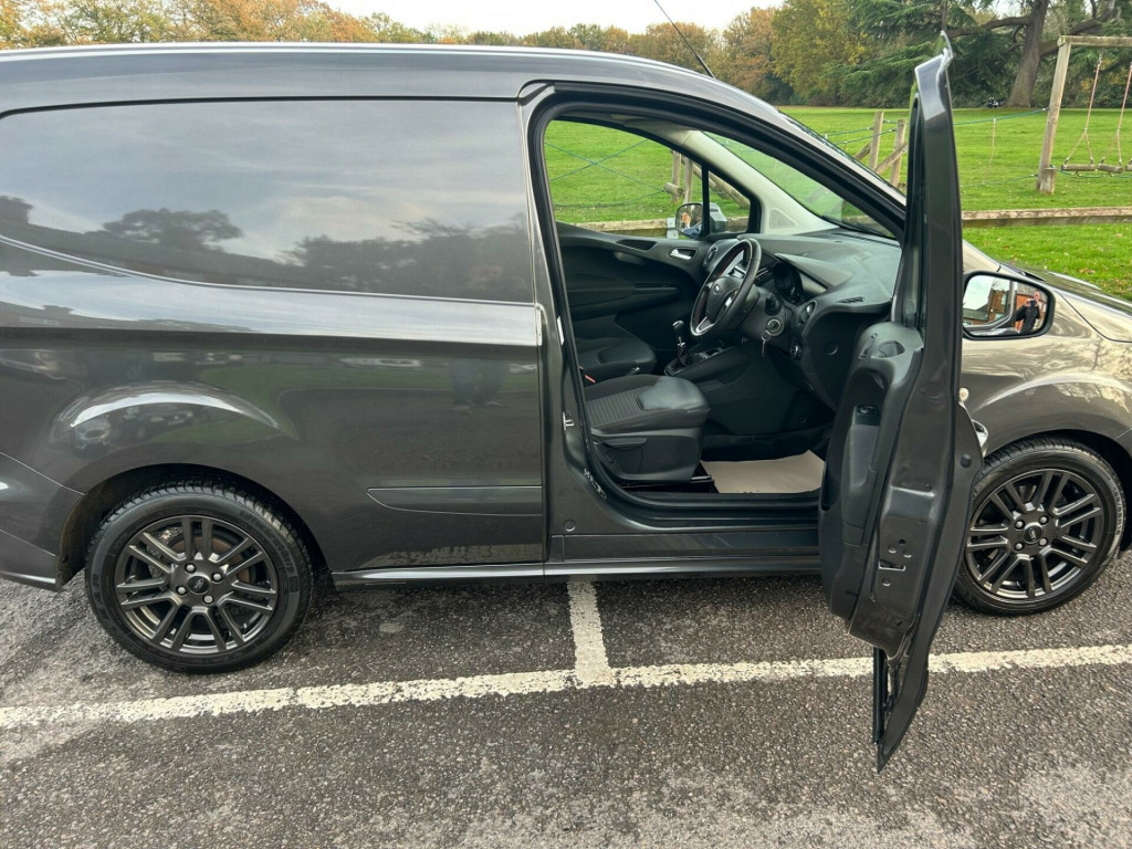 Discover this 2021 Ford Transit Courier, a 1.0 EcoBoost Sport L1 Euro 6 model, presented in excellent condition. This versatile van is powered by an efficient 1.0 litre petrol engine and meets Euro 6 emissions standards. Inside, you'll find a host of convenient features designed to enhance your driving experience, including a DAB radio with SYNC 3, a 4 inch colour screen, and SYNC Emergency Assist for added peace of mind. Connectivity is made easy with USB and iPod functionality, alongside Bluetooth hands free calling. For your comfort, this Transit Courier also boasts manual air conditioning.The Sport trim level of this Transit Courier offers a compelling package that sets it apart. The inclusion of the SYNC 3 system with its integrated colour screen and emergency assist provides a more advanced and safer way to manage your communication and entertainment on the go compared to many other vehicles in its class. Furthermore, the combination of the responsive 1.0 EcoBoost engine and the Sport styling ensures a driving experience that is both economical and enjoyable, making this Ford Transit Courier a practical and well equipped choice for your needs. atcham category 1 alarm, rear view camera, parking aid - rear sensors, front parking sensors, power front windows - power one shot up and down driver and passenger, ford navigation system, 12v power socket - front, 12v power socket - loadbox, 16in alloy wheels - black painted, 2nd remote key, acoustic windscreen, airbag - driver front single stage, auto headlamps and rain sensitive wipers, black painted power heated door mirrors, body colour side mouldings, body coloured front and rear bumper with skid plate, bulkhead - full steel, cargo tie-downs - din 75410 compliant, centre console with 2 cup holders and a4 size stowage, centre mounted brake light, childproof rear door locks, courtesy lights with map reading lights, dab radio and sync 3 - includes 4in colour screen - sync emergency assist - usb connectivity - ipod functionality - bluetooth hands free, daytime running lamps, device dock, door handles - body colour, door levers - bright-finish, doors - rear hinged, driver seat belt minder, drivers seat with height adjust - lumbar adjust - armrest and passenger underseat drawer, eba - emergency brake assist, epas - electric power assisted steering, esc - electronic stability control, easy fuel filler, emergency brake warning, engine immobiliser, front fog lights, fuel computer, glovebox - illuminated, grille - self colour with magnetic grey painted surround, headlights - courtesy delay, headlights - twin chamber halogen, hill launch assist - trailer sway control - roll over mitigation, interior lighting - battery saver - 30min, leather gear knob with red gaiter stitching, leather steering wheel with red stitching - radio controls and leather gear knob with red stitch gaiter, load compartment - lights, lockable glovebox, manual air conditioning, overhead storage console, passengers seat - 2-way, pollen filter, power front windows - power one shot down driver only, power point plug, recirculation filter, remote central-double locking, remote control locking - 1 flip key and 1 lollipop key, rubber lining - front, side load door track cover, side loading door - nearside, spare wheel - full size, sport rocker panels, sports stripes, steering column - rake and reach adjustment, tachometer, unglazed asymmetric rear doors