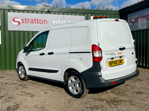 This 2019/68 Ford Transit Courier 1.5 TDCi Panel Van is a reliable commercial vehicle with 92716 miles on the clock, powered by a Diesel engine. as part of the sale Stratton will give the vehicle a oil and filter service and will supply with a new Mot, ULEZ compliance, this 5-door panel van comfortably seats 2 people and has a gross weight of 1810kg, making it a great choice for transporting goods. The sleek design includes 15-inch steel wheels, black headlight bezel, hub covers, bodyside mouldings, and self-colored door handles, giving it a professional and modern look. With no VAT, this Euro 6 van is a great investment for any business. This vehicle will undergo a complete and meticulous mechanical inspection which has the backing of a 3 month BLUECHIP extendable warranty. We must add at this juncture that the majority of our customers tend to extend to the 12 month all mechanical all electrical warranty at the extremely competitive price of just £399+ VAT. Full details can be viewed at www.strattoncarcompany.co.uk. Offered for sale by Stratton car Company of Sussex A Family Run Business. in steel wheels, black headlight bezel, black hub covers, bodyside mouldings, door handles - self coloured, front bumper - self colour, grille - self colour, mirrors - self colour housing manually controlled, rear bumper - self colour, spare wheel - full size, tinted glass, windows - front manual, 3-point seat belts, abs - anti-lock braking system, airbag - driver front single stage, driver seat belt minder, eba - emergency brake assist, esc - electronic stability control, easy fuel filler, emergency brake warning, engine immobiliser, hill launch assist - trailer sway control - roll over mitigation, remote central-double locking, side load door child locks, cargo tie down hooks x 6, centre console with 2 cup holders and a4 size stowage, courtesy lights - front without map reading light, device dock, door handles - interior - black, drivers seat - fore-aft adjustable, gearshift knob - soft feel with black insert, heater - recirculation, interior lighting - battery saver - 30min, lidded glovebox, load compartment - lights, moulded full bulkhead, passenger seat - fore-aft adjustable, pollen filter, rubber lining - front, steering column - rake and reach adjustment, steering wheel - 3 spoke pu, unglazed asymmetric rear doors, centre mounted brake light, daytime running lamps, headlights - courtesy delay, headlights - twin chamber halogen, dab radio with bluetooth and usb, epas - electric power assisted steering, tachometer