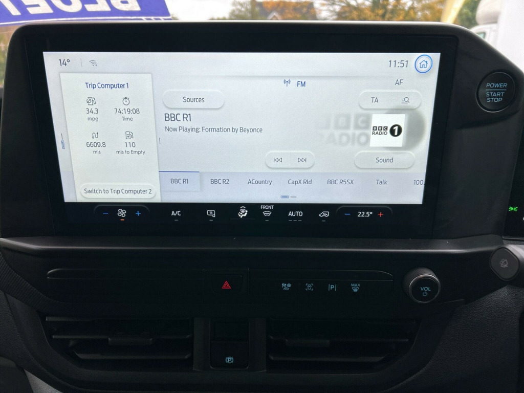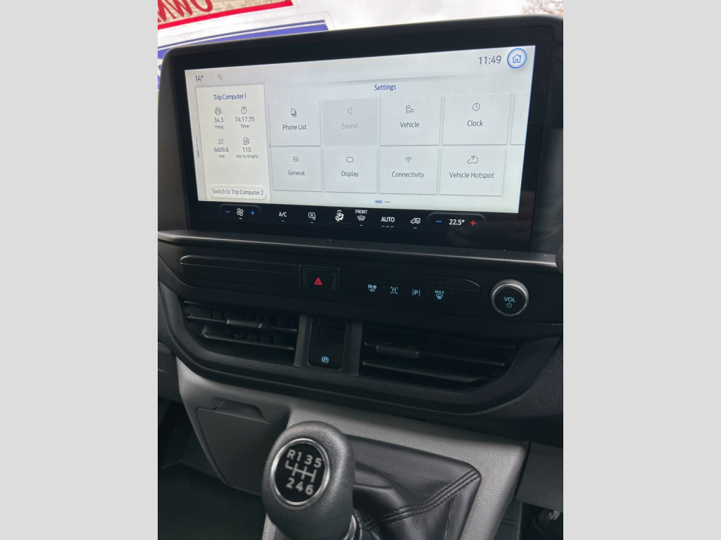 With only one previous owner and low mileage for its age at 15099 miles, this 2024 Ford Transit Custom 280 Leader is ready for its next chapter. As a Transit Custom 2.0 280 EcoBlue Leader L1 H1 Euro 6 (s/s) 5dr derivative, this vehicle is equipped with a 2.0L diesel engine and complies with Euro 6 emission standards. The trim is Leader. Enjoy a comfortable environment with the automatic air conditioner, which includes climate control. Manoeuvring is made easier with the Ford Co-Pilot 360 Assist DAT Pack 1, including rear parking sensors. The LED headlights provide enhanced visibility.This particular model stands out with its low CO2 emissions, making it an environmentally conscious choice. Furthermore, its low insurance group means it could be more economical to insure than similar vehicles.. 13in Touchscreen, 2 Remote Keys, 5G Embedded Modem, ABS - Anti-lock Braking System, AECS NO SMS - Roll Detect 2G, Alcohol Interlock, Auto High Headlamp, Bottle Holder - Twin 2 litre Bottle Capacity - Facia-Mounted, Bumper - Front Black, Courtesy Light, Daytime Running Lamps, Drivers Airbag, Dual Power Heated Signal Mirrors - Black, EBA - Emergency Brake Assist, EBD - Electronic Brakeforce Distribution, ESC - Electronic Stability Programme, Electric Window - Power Drivers Front, Emergency Brake Light Flashing, Engine Immobiliser, Entry Dual Passenger Seat Pack, Ford Co-Pilot 360 Assist - DAT Pack 1, Ford Easy Fuel System, Front Seat Belts with Pre-Tensioners, Front Splash Guard, Front Windshield Defroster - Quick Clear, Full Metal Bulkhead, HLA - Hill Launch Assist, Headlights - LED, Headlining - Cab - Moulded, Hill Start Assist, Hinged Rear Cargo Door, Interior LED Lights, Kerbside Side Load Door, Keyless Start, LAC - Load Adaptive Control, Load Compartment - Tie Down Loops x6, Locking Wheel Nuts, Mechanical Parking Brake, Passenger Airbag, Power Assisted Steering, Power Door Deadlocks - Double Locking, RSC - Roll Stability Control, Rear Bumper - Self Colour, Rear Splash Guards, Rear USB Port, Regular Van Standard Unlocking, SYNC 4, Seat Belts - 3-Point Diagonal Inertia Reel - All Seats, Steering Column - Rake and Reach Adjustment, Steering Wheel - Polyurethane, Storage - Drivers Side Storage Compartment on Facia Top, Storage - Front Door Map Pockets, Storage - Underseat Stowage Compartment, Tinted Glass Complete, Tool Kit, Traction Control - TC, Trailer Sway Control, Trip Computer, Tyre Pressure Monitoring System - TPMS, Tyre Repair Kit, Washer Tank Level Warn Lamp, Wipers - Front Variable Intermittent, Alloys, Automatic Air Conditioner, Spare Wheel - 16in Steel, Cloth - Plus Style 1 - Black Onyx.
