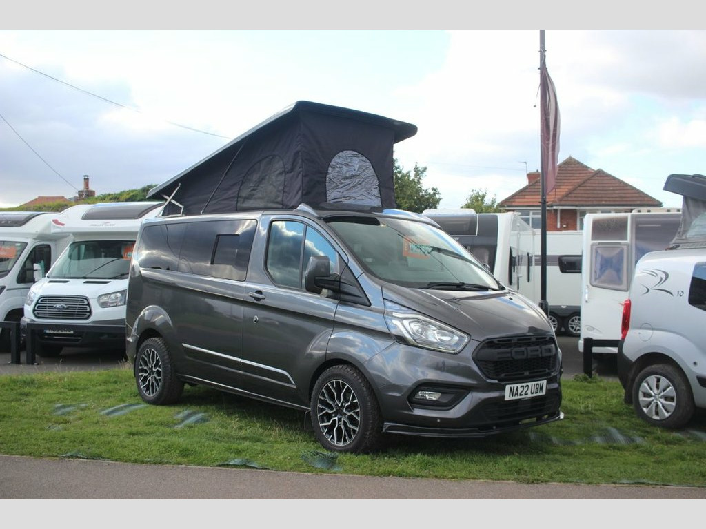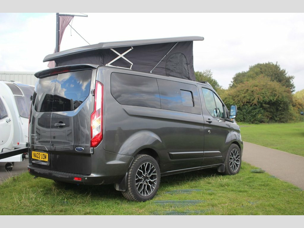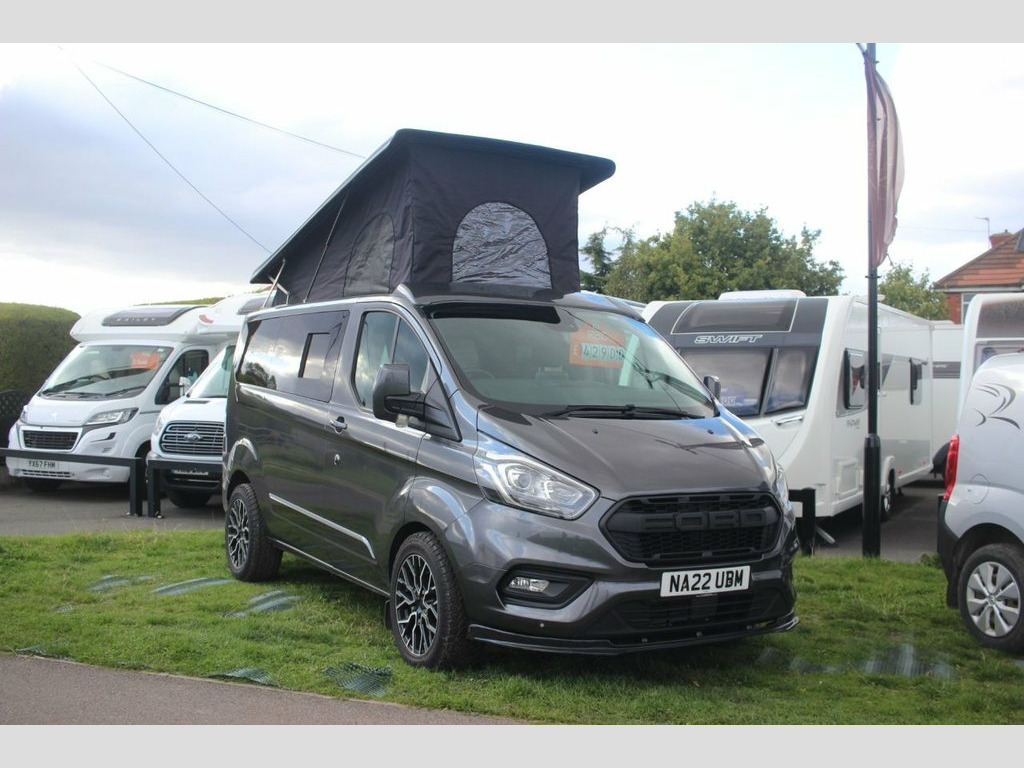 NA22UBM (2022) 47,668 miles, Ford Transit Custom 280 Limited Camper Van, Short wheel base, 2.0 TDCI (130 BHP) Euro 6 emissions, 6 speed manual gearbox, Professional Camper Conversion finished to the highest standard by Trackside Campers, 5 seats 5 seat belts, Pop up Roof, 4 Berth, Apple Carplay and Android Auto, Stunning metallic grey paintwork, Black and silver 18 inch alloy wheels with off road tyres, Black privacy glass, Front bumper spoiler, Rear roof spoiler, Modified FORD front grill, Air conditioning, Cruise control, Bluetooth hands free, Front and rear parking sensors, Habitation heater, Fridge freezer, Kitchen sink, On board water tank, 240 volt hook up, HPI clear, 3 months warranty that could be extended to 12 months, Before collection we will carry out a 12 month MOT, engine service and a habitation service to National Caravan Council Standards Finance available up to a 10 year term. 16in Alloy Wheels - Style A, 180 Degree Rear Cargo Check Arms, 2 Interior Grab Handles, 2 Key Fobs, 3 Button Key Fob, ABS and ESP Plus, Automatic Headlights - Follow Me Home, Automatic Headlights with Rain Sensing W, Body Colour Rear Bumper, Body Coloured Exterior Mirror Finish, Body Coloured Lift - Decklid Exterior Ha, Body Coloured Plastic Front Bumpers, Bodyside Mouldings - Body Colour, Bottle Holder - Twin 2 litre Bottle Capa, Bulkhead - Full Steel with Load Through , Chrome Grille with 3 Bars, Colour Keyed Exterior Pack, Complete Rear Trim Board, Configurable Unlocking - Config 1, Courtesy Lights - Header, Courtesy Lights - Header-Mounted - Front, Daytime Running Lights Level 2, Digital