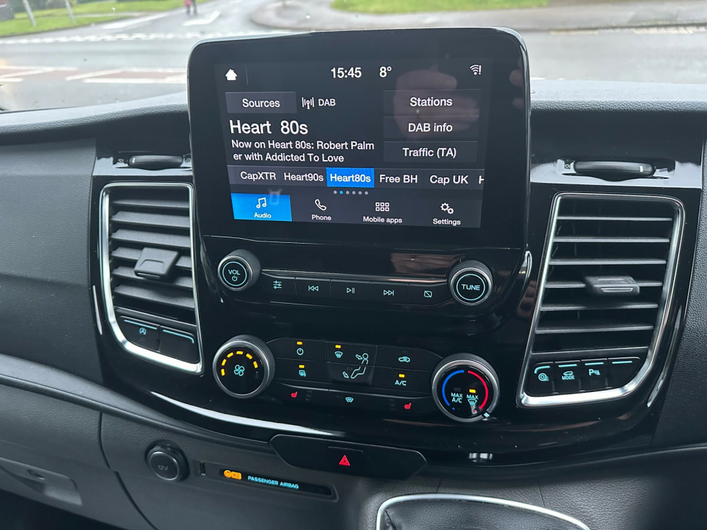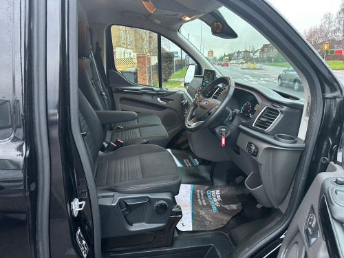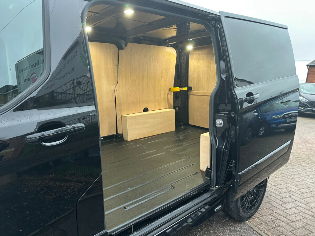 STUNNING ford custom limited superStorm 18 inch black alloys Agate black metallic Air conditioning Cruise Control CarPlay Front and Rear parking sensors Heated seats Heated windscreen Alarm Powerfold mirrors Ply lining a real headturner in alloy wheels, body colour front bumper and mirror housing, body colour rear bumper, bodyside mouldings - body colour, chrome grille with 3 bars, colour keyed exterior pack, door handles - body colour, electrically-operated front windows with one touch drivers, light tinted glass - ilo privacy glass, power foldable and heated mirrors, quickclear heated windscreen, spare wheel - conventional, 2nd remote key fob, abs - anti-lock braking system, airbag - front passenger, drivers airbag, eba - emergency brake assist, esc - electronic stability programme, hill start assist, power door deadlocks - shielded, rsc - roll stability control, remote central door locking with deadlocks, side wind mitigation, thatcham category 1 alarm, traction control - tc, trailer sway control, 8 way adjustable drivers seat with armrest, bulkhead - full steel with load through hatch, complete rear trim board - half height, easy clean load floor, front manual air conditioning, gear knob - leather, interior grab handles - front, led load compartment light, load compartment - protection kit, load compartment - tie down loops x8, lockable glovebox, mini overhead console, moulded load floor liner, passenger side sliding load door with track cover, rear doors - 180 opening - unglazed - positive stop at 90, seat pack 25, seats - dual passenger with underseat stowage, steering column - rake and reach adjustment, steering wheel - leather-trimmed, steering wheel controls, sunglasses holder in roof stowage, sunvisors - illumination of driver and passenger, vehicle maintenance monitor, automatic headlights - follow me home, automatic headlights with rain sensing wipers, halogen headlights with courtesy delay, halogen projector headlights with led daytime running lights and adaptive cornering front fog lights, cruise control, ford eco mode - driver information system, heavy duty alternator, parking aid - front and rear with front fog lamps, power assisted steering, selectable drive mode, shift indicator light, trip computer, water in fuel filter with sensor, ice pack 21 - sync3 audio, two 12v power socket