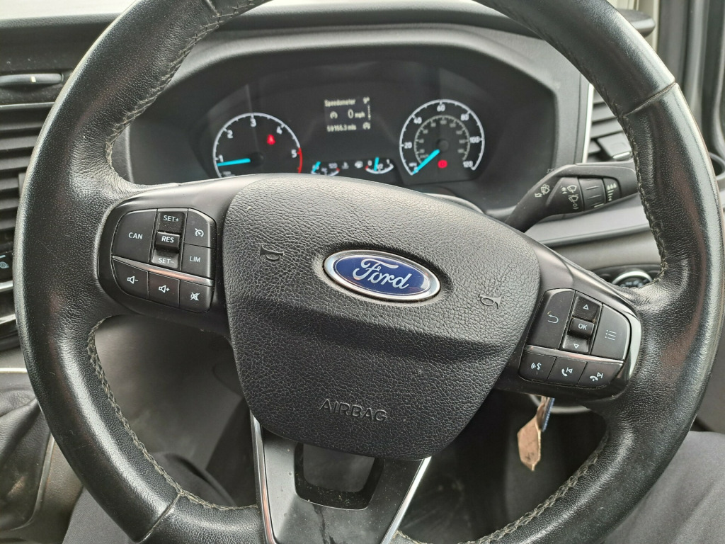 in alloy wheels, body colour front bumper and mirror housing, body colour rear bumper, bodyside mouldings - body colour, bumper - front body colour - partial, chrome grille with 3 bars, colour keyed exterior pack, electrically-operated front windows with one touch drivers, light tinted glass - ilo privacy glass, power foldable and heated mirrors, quickclear heated windscreen, spare wheel - conventional, 2nd remote key fob, abs - anti-lock braking system, airbag - front passenger, drivers airbag, eba - emergency brake assist, esc - electronic stability programme, front passenger airbag with deactivation switch, hill start assist, power door deadlocks - shielded, rsc - roll stability control, remote central door locking with deadlocks, side wind mitigation, thatcham category 1 alarm, traction control - tc, trailer sway control, 8 way adjustable drivers seat with armrest, bulkhead - full steel with load through hatch, complete rear trim board - half height, easy clean load floor, front manual air conditioning, gear knob - leather, led load compartment light, load compartment - protection kit, lockable glovebox, map reading lights, mini overhead console, passenger side sliding load door with track cover, rear doors - 180 opening - unglazed - positive stop at 90, seat pack 25, seats - dual passenger with underseat stowage, steering column - rake and reach adjustment, steering wheel - leather-trimmed, steering wheel controls, sunglasses holder in roof stowage, sunvisors - illumination of driver and passenger, vehicle maintenance monitor, auto headlamps and rain sensitive wipers, automatic headlights - follow me home, halogen projector headlights with led daytime running lights and adaptive cornering front fog lights, cruise control, ford eco mode - driver information system, heavy duty alternator, parking aid - front and rear with front fog lamps, power assisted steering, selectable drive mode, shift indicator light, trip computer, water in fuel filter with sensor, ice pack 21 - sync3 audio, two 12v power socket
