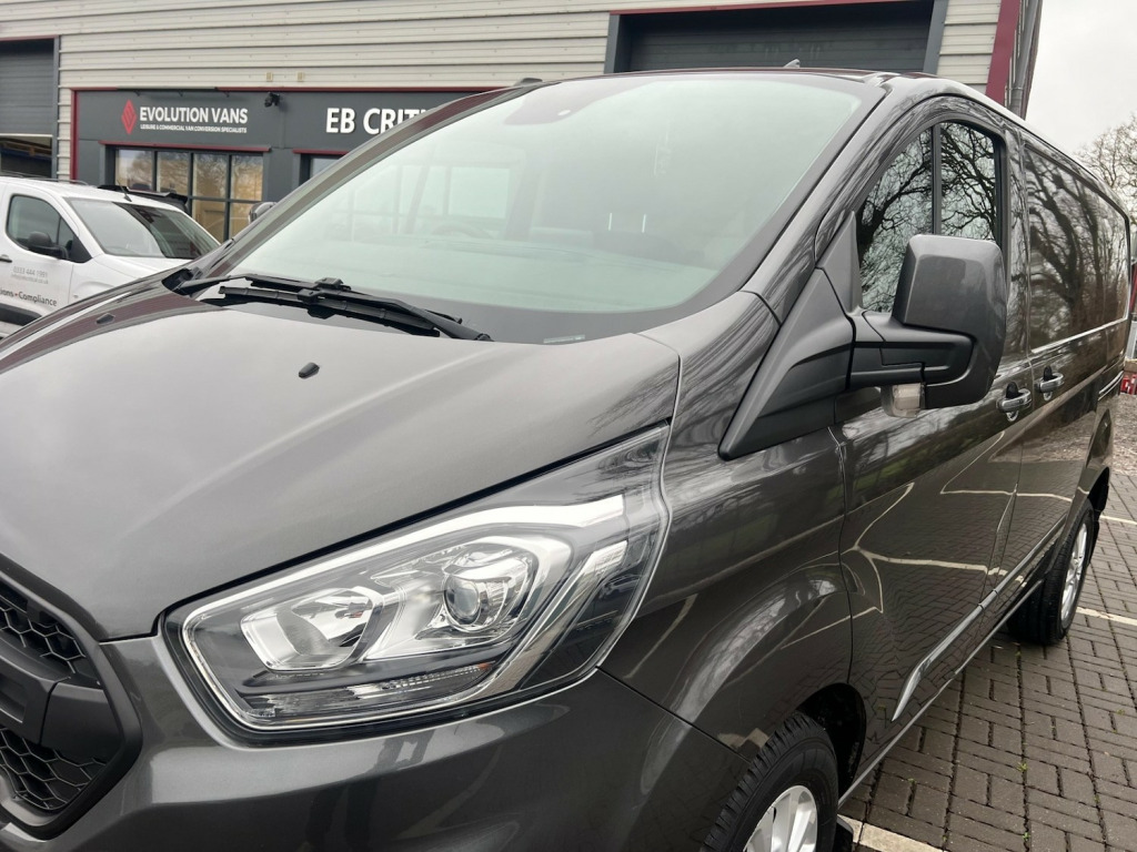 This 2020 Ford Transit Custom Limited Edition features a warranted mileage, a clear HPI vehicle history, 12 months MOT, and a part service record. The Limited spec is the top choice; you benefit from a multifunction steering wheel, cruise control, heated seats, a touchscreen media system with Android and Apple CarPlay, air conditioning, stop-start, driving modes, gloss-black dashboard trims, upgraded seat upholstery, heated mirrors, and a heated windscreen. This Euro 6-compliant diesel van is practical, equipped with a 2.0-litre diesel 130ps engine and a short wheelbase for agile handling. It comes with a 6-month warranty from market-leading warranty provider Momentum Warranties, which you can upgrade to 12 months. The warranty also includes free breakdown cover, and you can take the vehicle to any VAT-registered garage in the UK. Competitive finance options are available, and we welcome part-exchanges of great condition cars and vans at trade value. Nationwide delivery options are available, please contact us for a quote. T&Cs apply. Evolution Vans specialise in leisure and commercial van conversions, from campervans to crew cabs. We can supply and fit windows, alloys, carpet lining, pop-top roofs, rear seating, van racking, roof bars, roof racks, diesel heaters, kitchens, rock-and-roll beds, and much more. r conditioning, bluetooth connection, climate control, door mirrors electrically foldable, rain-sensing wipers, usb/ipod interface, barn doors, bulkhead, drivers arm rest, dual passenger seat, standard roof, cruise control, esp, front parking sensor, multi-function steering wheel, parking sensors, power steering, rear parking sensor, steering wheel rake adjustment, steering wheel reach adjustment, traction control, trip computer, abs, air bag, passenger airbag, service indicator, alarm, central locking, immobiliser, locking wheel nuts, electric front windows, electric mirrors, heated door mirrors, windscreen heating, front armrest, heated seats, height adjustable drivers seat, alloy wheels, auto lighting, body coloured bumpers, colour coded body, front fog lights, led 3rd brake light, led daytime running lights