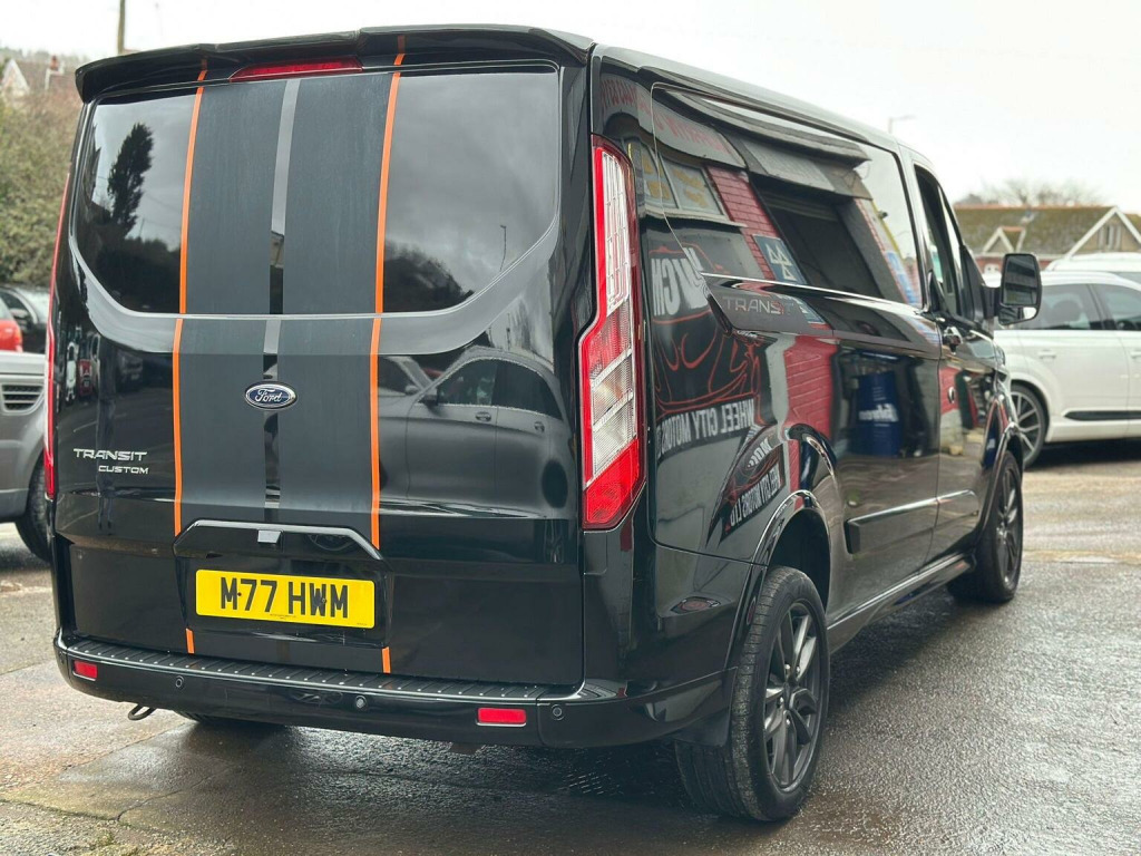 LOVELY EXAMPLE, 6 SEATER,BELT AND SERVICE WITH FORD IN END OF 2023 ON 46K MILES, FULL SERVICE IN END OF 2024, WILL BE SERVICED BEFORE LEAVING US AND MOTD. 1 OWNER SINCE NEW, 2 KEYS, This 2021 Ford Transit Custom 2.0 290 EcoBlue Sport L1 H1 Euro 6 (s/s) 5dr boasts a single owner from new, offering excellent provenance. This 290 Sport variant, finished in the Sport trim, is powered by a robust 2.0 litre diesel engine, meeting Euro 6 emissions standards. It comes equipped with Seat Pack 21 and Front Seat Pack 34, both including heated seats for enhanced comfort. For convenience, it features front and rear parking aid, front fog lamps, and a premium visibility pack with a rear camera. Manual air conditioning ensures a pleasant cabin environment. With an impressive engine power output of 182 bhp, this Transit Custom offers strong performance. Its fuel economy is also a highlight, achieving 43 mpg, which indicates it is more economical than many similar vehicles. This combination of power and efficiency, along with its single owner history and comprehensive features, makes this Ford Transit Custom a compelling choice.