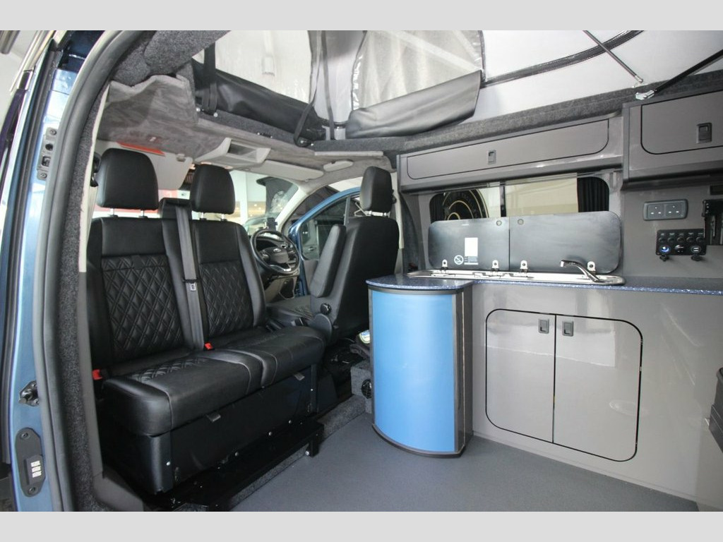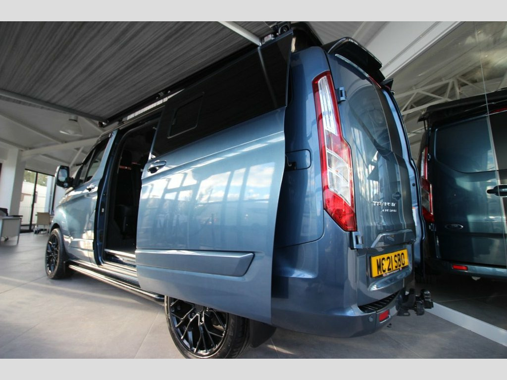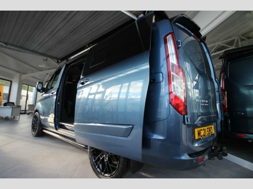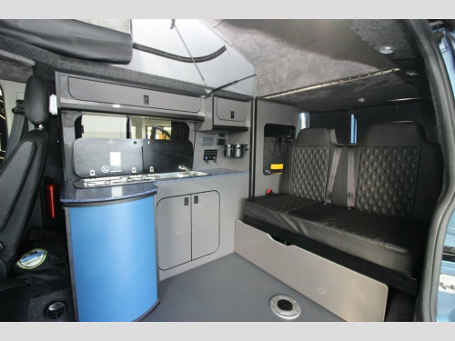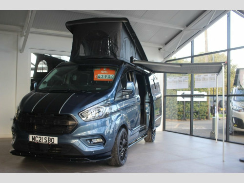 £42,900 2021 Only 27,000 miles! Ford Custom Camper Van, Excellent condition! 5 seats 5 seatbelts, 4 berth, TDCI engine 130 BHP, 6 speed manual, Short wheelbase so fits in a normal car parking space, Air conditioning, Bluetooth hands free, Adaptive Cruise control, Unmarked gloss black alloy wheels, Stunning metallic blue paint work with Shelby racing stripes front and back, Fiamma F45s wind out awning, Gloss black front bumper splitter, Black side bars, Rear roof spoiler, Tow bar included, Slimline solar panel on the roof, Ghost Tracker/immobiliser fitted, Dash cam included, Habitation diesel heater, Soft close interior cupboards and drawers, Stunning unmarked black leather seats with diamond stitching, DC-DC charger fitted so engine charges the leisure battery, HPI clear, 3 months warranty that could be extended to 12 months, Before collection we will carry out a 12 month MOT, engine service and a habitation service to National Caravan Council Standards, Finance available up to a 15 year term, Part exchange welcome. 16in Alloy Wheels, 2nd Remote Key Fob, 8 Way Adjustable Drivers Seat with Armre, ABS - Anti-lock Braking System, Airbag - Front Passenger, Automatic Headlights - Follow Me Home, Automatic Headlights with Rain Sensing W, Body Colour Front Bumper and Mirror Hous, Body Colour Rear Bumper, Bodyside Mouldings - Body Colour, Bulkhead - Full Steel with Load Through , Chrome Grille with 3 Bars, Colour Keyed Exterior Pack, Complete Rear Trim Board - Half Height, Cruise Control, Door Handles - Body Colour, Drivers Airbag, EBA - Emergency Brake Assist, ESC - Electronic Stability Programme, Easy Clean Load Floor, Electrically-Operated Front Windows with, Ford Eco Mode - Driver Information Syste, Front M