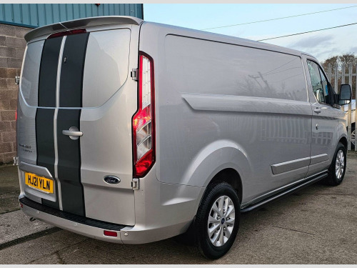 Finance arranged , Previously sold by us This 2021 Ford Transit Custom boasts a full service history including recent service and new discs and pads offering peace of mind for its next owner. Styled with gloss black side bars, rooftip spoiler, front lip spoiler and sport decals. This 2.0 300 EcoBlue Limited L2 H1 Euro 6 (s/s) 5dr model is a 300 Limited variant, powered by an efficient 2.0 litre diesel engine meeting Euro 6 emissions standards. The Limited trim level ensures a well equipped experience, with notable features including front manual air conditioning, Seat Pack 25 which provides heated driver and passenger seats, and parking aid for both the front and rear, complemented by front fog lamps. With a generous cargo volume of 6200 litres, this Transit Custom is ready for substantial loads. Its towing weight capacity of 2800 kg further enhances its versatility for various work requirements. The inclusion of heated seats and comprehensive parking assistance highlights how this vehicle offers a more comfortable and convenient driving and working experience compared to other similar models on the market. Px considered
