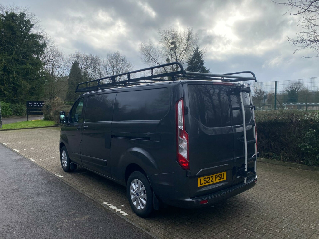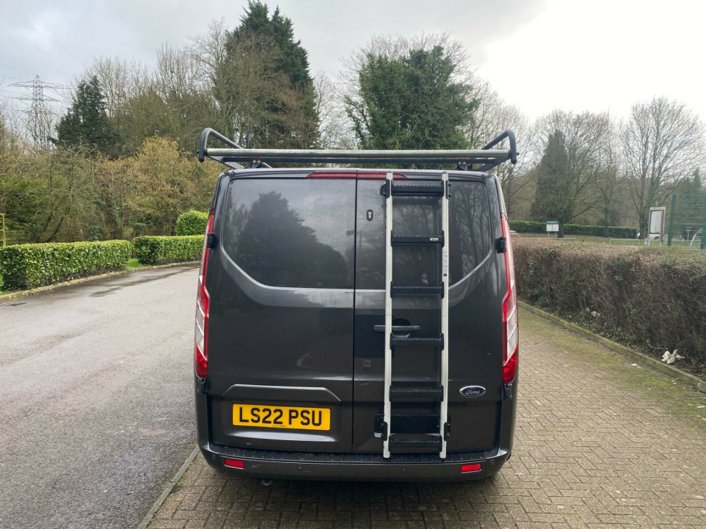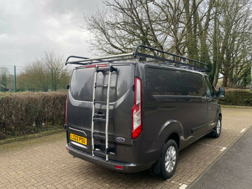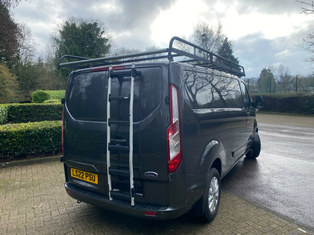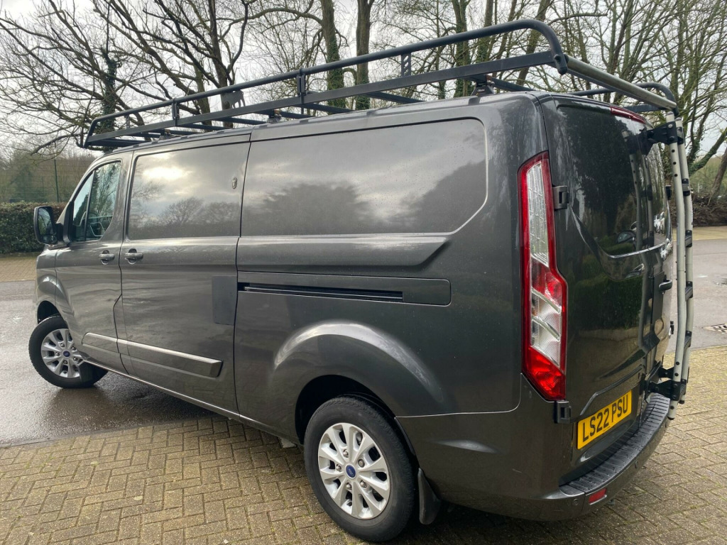 This 2022 Ford Transit Custom presents an exceptional ownership proposition with its very low mileage of just 31,000 miles, a testament to its careful use by its single owner. As a 2.0 300 EcoBlue Limited L2 H1 Euro 6 model, it combines efficient 2.0L diesel power with a robust Euro 6 emission standard. This Limited trim van boasts a full service history, with its last service completed at 32,001 miles on 02 February 2026, and benefits from an MOT valid until January 2027. Notable features include Seat Pack 25 with heated seats, front and rear parking aid complemented by front fog lamps, front manual air conditioning, Apple Car Play, DAB Radio, Bluetooth and automatic headlights with a follow me home function.The impressive 6,200 litre cargo volume offers ample space for your business needs, while the highlighted 43 mpg fuel economy demonstrates its cost effectiveness, indicating it performs better than many similar vehicles in its class. With a towing weight of 2,800 kg, this Transit Custom is well equipped for a variety of tasks. Furthermore, the vehicle comes with a 6 month warranty, providing added peace of mind for its next owner. ll length rhino roof rack, rear ladder, ford custom faux leather cross stitch seat covers, door slam locks, 16in alloy wheels, 2nd remote key fob, 8 way adjustable drivers seat with armrest, abs - anti-lock braking system, airbag - front passenger, automatic headlights - follow me home, automatic headlights with rain sensing wipers, body colour front bumper and mirror housing, body colour rear bumper, bodyside mouldings - body colour, bulkhead - full steel with load through hatch, chrome grille with 3 bars, colour keyed exterior pack, complete rear trim board - half height, cruise control, door handles - body colour, drivers airbag, eba - emergency brake assist, esc - electronic stability programme, easy clean load floor, electrically-operated front windows with one touch drivers, ford eco mode - driver information system, front manual air conditioning, gear knob - leather, halogen headlights with courtesy delay, halogen projector headlights with led daytime running lights and adaptive cornering front fog lights, heavy duty alternator, hill start assist, ice pack 21 - sync3 audio, interior grab handles - front, led load compartment light, light tinted glass - ilo privacy glass, load compartment - protection kit, load compartment - tie down loops x8, lockable glovebox, mini overhead console, moulded load floor liner, parking aid - front and rear with front fog lamps, passenger side sliding load door with track cover, power assisted steering, power door deadlocks - shielded, power foldable and heated mirrors, quickclear heated windscreen, rsc - roll stability control, rear doors - 180 opening - unglazed - positive stop at 90, remote central door locking with deadlocks, seat pack 25, seats - dual passenger with underseat stowage, selectable drive mode, shift indicator light, side wind mitigation, spare wheel - conventional, steering column - rake and reach adjustment, steering wheel - leather-trimmed, steering wheel controls, sunglasses holder in roof stowage, sunvisors - illumination of driver and passenger, thatcham category 1 alarm, traction control - tc, trailer sway control, trip computer, two 12v power socket, vehicle maintenance monitor, water in fuel filter with sensor