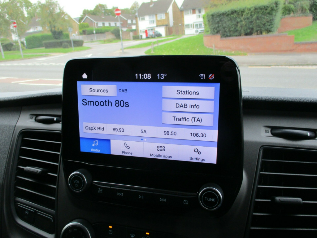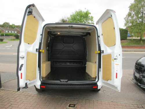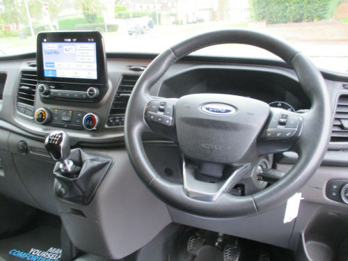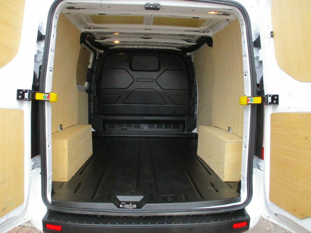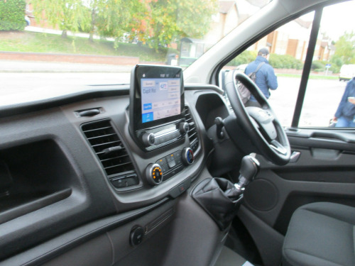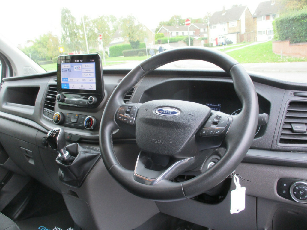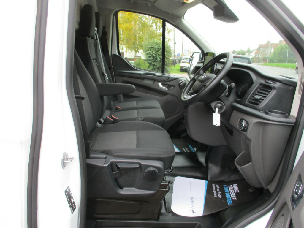 ford custom L1 H1 trend 300 high specification air con apple and android carplay sync 3 cruise control front and rear park assist heated windscreen Dab radio ply lining alloy wheels  in steel wheels, black exterior door handle, black lift-decklid exterior handle, body coloured exterior mirror finish, body coloured plastic front bumpers, colour keyed exterior pack 2, complete grille with 3 bars, door open tyre carrier drop, dual note electric horn, electric windshield defroster, electrically-operated front windows with one touch drivers, ford easy fuel system, front splash guard - mud flaps, non locking wheel nuts, partial body colour rear bumper, power fold back dual power mirrors, quickclear heated windscreen, rear splash guards, spare wheel - conventional, tinted glass complete, visibility pack - high, wheel covers - full, wide bodyside - grey moulding, 180 degree rear cargo check arms, 2 interior grab handles, 3 button key fob, bottle holder - twin 2 litre bottle capacity - facia-mounted, bulkhead - full steel with load through hatch, courtesy lights - header, doors - rear hinged, driver non-illuminated sunvisor, floorwell lights, front active seat belts, header mounted courtesy light - 2 maplights, header mounted package tray, interior trim accent pack b, kerbside side load door, load compartment - tie down loops x6, load compartment light, lockable glovebox, low series cluster, manual air conditioning, mini overhead console, molded gear shift knob, moulded load floor liner, partial molded headliner, passenger non-illuminated sunvisor, recirculation heater - front, rubber partial floor cover, seat pack 13, side-rear door trim panel - level 1, steering column - rake and reach adjustment, steering wheel - leather-trimmed, storage - drivers side storage compartment on facia top, storage - front door map pockets, storage - underseat stowage compartment, tool kit, wipers - front variable intermittent, abs and esp plus, configurable unlocking - config 1, doors auto re-locking, driver airbag restraint, esc - electronic stability programme, emergency brake light flashing, front seat belts with pre-tensioners, hill start assist, mechanical parking brake, multi channel door entry remote, power door deadlocks - shielded, rear door edge reflector strip, seat belt reminder system - drivers and front passengers, seat belts - 3-point diagonal inertia reel - all seats, speed dependent power lock group, two stage unlocking, automatic headlights - follow me home, automatic headlights with rain sensing wipers, daytime running lights level 2, front fog lights, front fog lights with adaptive cornering, front headlamp leveling, headlights - halogen projector, headlights - quad beam, high mounted stop lamp, embedded modem, ice feature pack 21, extra heavy duty alternator, front parking aid, power assisted steering, reverse parking aid, speed control, standard duty battery, standard duty suspension, starter equipment -20 degrees c, trip computer, washer tank level warn lamp