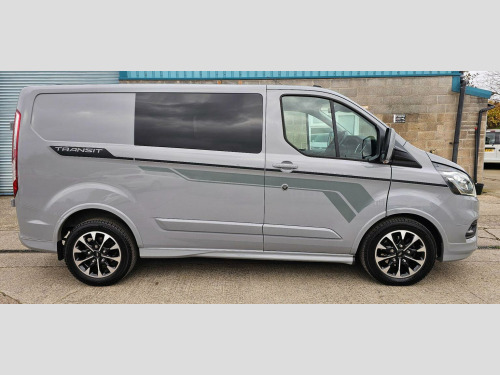 Finance Arranged, What a unique exciting chance to own a mint enhanced ford custom sport DAY VAN with option to put your own stamp on it. This is a very versatile comb van to start with, unlike factory Ford combi vans this SPORT Panel example has had 3 individual ford tourneo seats added which can be removed when more space is required and dropped flat if you were going to instal a rear bed system to then add as a partial bed base. Also side privacy windows installed and a diesel heater fitted for rear warmth when stationary to make this a very useable van for those that want more flexibility then a fixed rear seat with bulkhead found in ford factory combi vans. This van is mint throughout and offers exceptionally low mileage for its age, having covered just 19,450 miles, and boasts a full dealership service history with a clear vehicle history check. This L1 H1 Euro 6 compliant model features a powerful 2.0L EcoBlue diesel engine delivering 168 bhp, paired with an automatic transmission. Notable features include Lane Departure Warning, Adaptive cruise control, factory nav, reversing camera and rearview mirror camera, automatic headlights, and manual air conditioning. For practicality, it comes equipped with six load compartment tie down loops and a load area protection kit. The ICE Feature Pack 25 adds further convenience with Bluetooth connectivity and adaptive cruise control. The 310 Sport derivative stands out with its impressive engine power of 168 bhp, indicating a superior performance compared to other vehicles in its class. The inclusion of adaptive cruise control and lane departure warning highlights its advanced technology, offering a more comfortable and safer driving experience. This well maintained Transit Custom is ready for its next owner, combining robust functionality with desirable modern features.