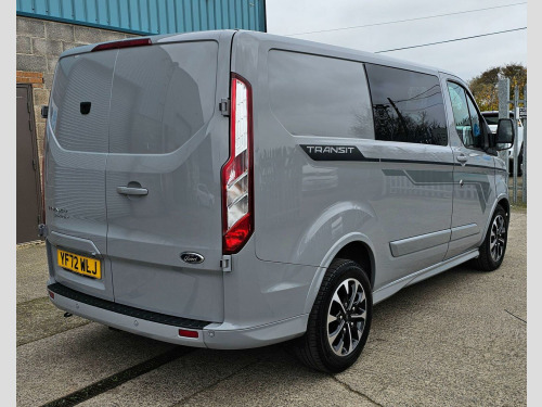 NO VAT, This 2022 Ford Transit Custom Sport panel van has had 3 individual ford tourneo seats added to rear plus privacy fixed side windows and a diesel heater fitted under passenger seat to make this a very useable van and a ford combi van for those that want more flexibility then a fixed rear seat with bulkhead found in ford factory combi vans. This van is mint throughout and offers exceptionally low mileage for its age, having covered just 19,450 miles, and boasts a full dealership service history with a clear vehicle history check. This L1 H1 Euro 6 compliant model features a powerful 2.0L EcoBlue diesel engine delivering 168 bhp, paired with an automatic transmission. Notable features include Lane Departure Warning, Adaptive cruise control, factory nav, reversing camera and rearview mirror camera, automatic headlights, and manual air conditioning. For practicality, it comes equipped with six load compartment tie down loops and a load area protection kit. The ICE Feature Pack 25 adds further convenience with Bluetooth connectivity and adaptive cruise control. The 310 Sport derivative stands out with its impressive engine power of 168 bhp, indicating a superior performance compared to other vehicles in its class. The inclusion of adaptive cruise control and lane departure warning highlights its advanced technology, offering a more comfortable and safer driving experience. This well maintained Transit Custom is ready for its next owner, combining robust functionality with desirable modern features.