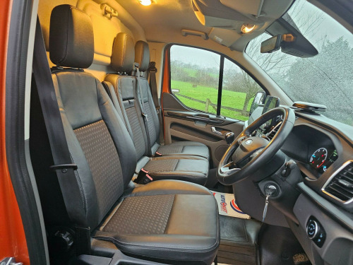 This 2023 Ford Transit Custom 310 Sport offers complete peace of mind with its full service history and a clear vehicle history check. This Euro 6 compliant 2.0 litre diesel van boasts 168 bhp and a substantial towing weight of 2800 kg, making it a capable workhorse. It comes with a 3 month warranty and a 12 month MOT provided on purchase, ensuring its roadworthiness. Notable features include Lane Departure Warning with automatic headlights, manual air conditioning, a load area protection kit, daytime running lights, and convenient storage compartments on the driver's side facia top.With an impressive cargo volume of 6200 litres, this Transit Custom provides ample space for your business needs, exceeding what you might find in similar vehicles. The 168 bhp engine ensures strong performance, while the 310 Sport derivative and Sport trim level signify a well equipped and robust van. This Ford Transit Custom is ready to tackle demanding tasks with its combination of power, capacity, and practical features. in alloy wheels - style 2, 180 degree rear cargo check arms, 2 interior grab handles, 2 key fobs, 3 button key fob, abs and esp plus, automatic headlights - follow me home, automatic headlights with rain sensing wipers, body colour rear bumper, body coloured exterior mirror finish, body coloured lift - decklid exterior handles, body coloured plastic front bumpers, bodyside mouldings - body colour, bottle holder - twin 2 litre bottle capacity - facia-mounted, bulkhead - full steel with load through hatch, colour keyed exterior pack, coloured grille with 3 base bars, complete rear trim board, configurable unlocking - config 1, courtesy lights - header, daytime running lights level 2, digital rear view mirror, door handles - body colour, door open tyre carrier drop, doors - rear hinged, doors auto re-locking, driver airbag restraint, driver illuminated sunvisor, dual note electric horn, esc - electronic stability programme, electric windshield defroster, electrically-operated front windows with one touch drivers, embedded modem, emergency brake light flashing, extra heavy duty alternator, fixed rear view camera, floorwell lights, ford easy fuel system, front active seat belts, front fog lights, front fog lights with adaptive cornering, front headlamp leveling, front parking aid, front seat belts with pre-tensioners, front seat pack 34, gear knob - leather, header mounted courtesy light - 2 maplights, header mounted package tray, headlights - halogen projector, headlights - quad beam, high mounted stop lamp, hill start assist, hood accent stripes, ice feature pack 21, inclination anti-theft sensor, interior trim accent pack c, kerbside side load door, led load compartment light - rail, lane departure warning, load area protection kit 2, load compartment - tie down loops x8, lockable glovebox, locking wheel nuts, low series cluster, manual air conditioning, mechanical parking brake, mini overhead console, mini spare wheel - 17in steel, moulded load floor liner, multi channel door entry remote, partial molded headliner, passenger airbag restraint, passenger illuminated sunvisor, power assisted steering, power door deadlocks - shielded, power fold back dual power mirrors, quickclear heated windscreen, rear door edge reflector strip, recirculation heater - front, reverse parking aid, roof storage for driver sunglasses, rubber partial floor cover, seat belt reminder system - drivers and front passengers, seat belts - 3-point diagonal inertia reel - all seats, side-rear door trim panel - level 1, speed control, speed dependent power lock group, sportvan styling kit, standard duty battery, standard duty suspension, starter equipment -20 degrees c, steering column - rake and reach adjustment, steering wheel - leather-trimmed, storage - drivers side storage compartment on facia top, storage - front door map pockets, storage - underseat stowage compartment, thatcham category 1 alarm, tinted glass complete, tool kit, trip computer, two stage unlocking, tyre pressure monitoring system, visibility pack - premium, washer tank level warn lamp, wipers - front variable intermittent