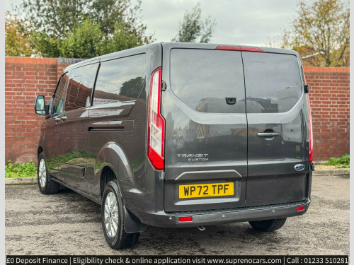 This 2022 Ford Transit Custom 2.0 320 EcoBlue Limited Crew Van Auto L2 H1 Euro 6 5dr is currently available for £23,900 in Ashford Surrey with Diesel engine and Automatic gearbox. For more information or to arrange a viewing, click here to send us an email using form below.