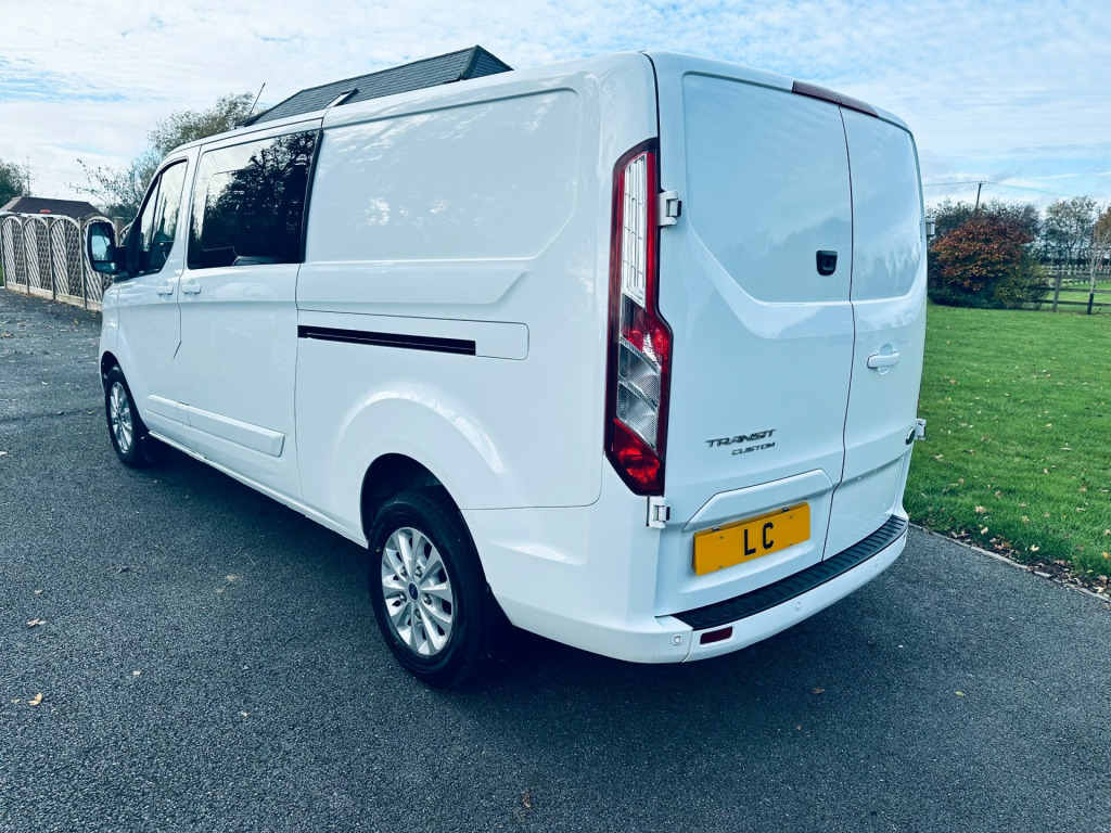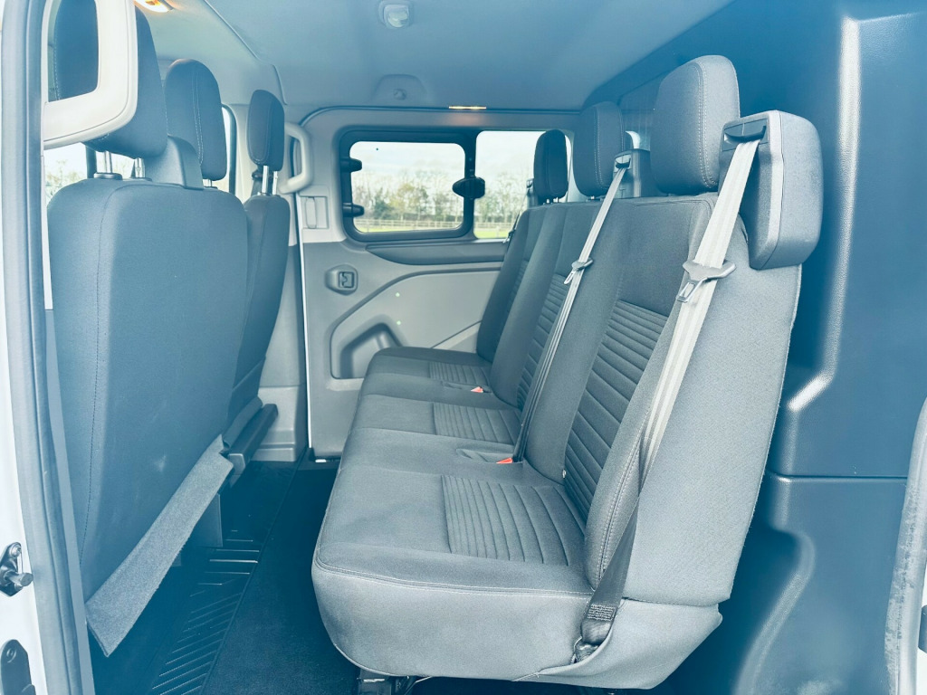 For sale is a stylish and reliable 2023 Ford Transit Custom 2.0 320 EcoBlue Limited Crew Van Automatic Double Cab with only 46000 miles on the clock. 1 OWNER,AIR CONDITIONING,CRUISE CONTROL, ELECTRIC WINDOWS,ELECTRIC FOLD IN MIRRORS,FRONT AND REAR PARKING SENSORS,DIGITAL REARVIEW MIRROR,MEDIA SCREEN,APPLE CAR PLAY,6 SEATS,PLY LINED IN THE REAR, ALLOY WHEELS, COLOUR CODED BUMPERS AND MIRRORS.SUPPLIED WITH 12 MONTHS MOT,6 MONTHS PLATINUM WARRANTY,OIL AND FILTER SERVICE.ALL MAJOR DEBIT CARDS ACCEPTED,BANK TRANSFER,FINANCE AVAILABLE SUBJECT TO STATUS. r conditioning, bluetooth connection, door mirrors electrically foldable, rain-sensing wipers, usb/ipod interface, xenon headlamps, adjustable steering column, cruise control, front parking sensor, multi-function steering wheel, parking sensors, power steering, rear parking sensor, trip computer, abs, air bag, quick-clear screen, service indicator, immobiliser, locking wheel nuts, remote alarm, remote central locking, electric front windows, electric mirrors, electric windows, windscreen heating, digital radio, internet connection, media storage, mobile phone app interface, steering wheel audio controls, front armrest, front head restraints, heated front seat, height adjustable drivers seat, lumbar support, retractable headrests, alloy wheels, auto lighting, body coloured bumpers, colour coded body, front fog lights, led 3rd brake light, led daytime running lights, metallic paintwork, 6 seater crew van, alloy wheels, apple play, euro 6, ulez compliant