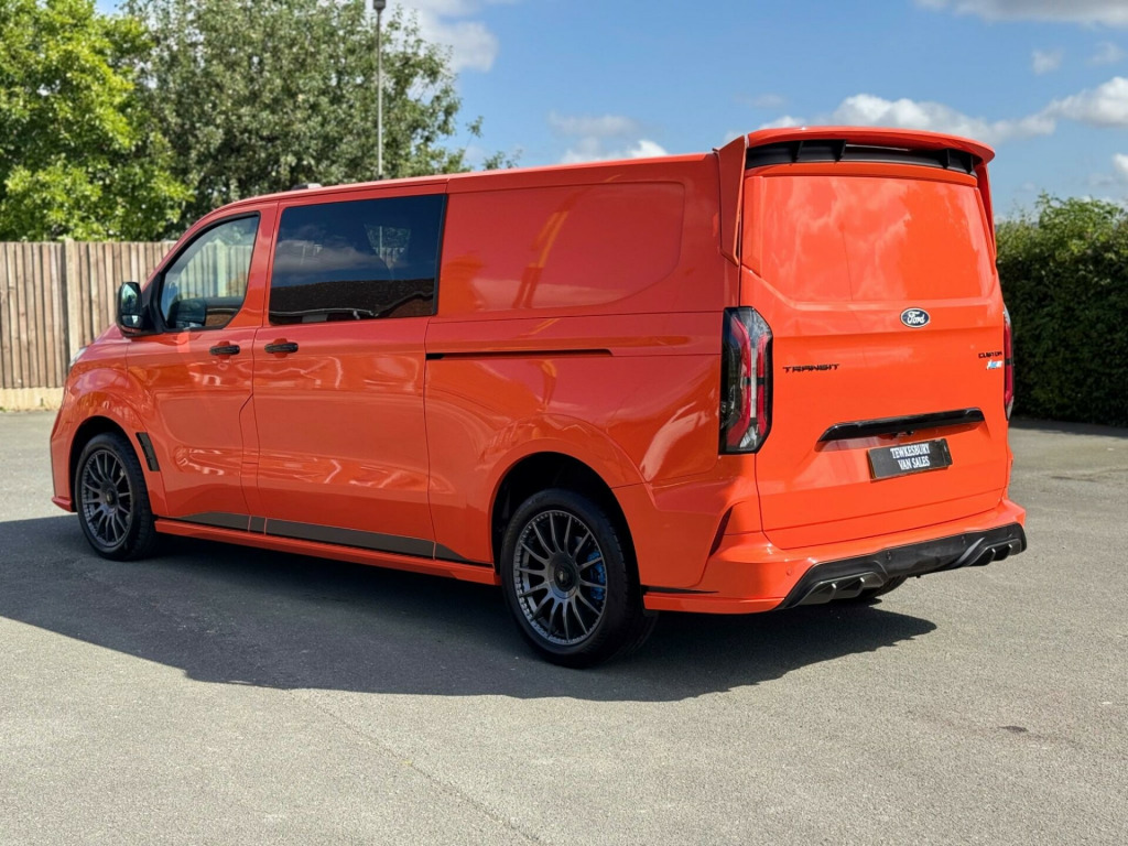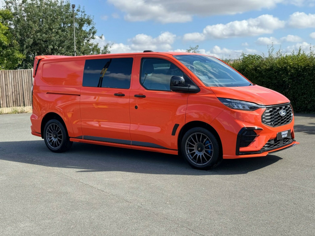 VIEWING BY APPOINTMENT, WE ARE FREQUENTLY OUT COLLECTING AND DELIVERING VEHICLES SO PLEASE CALL BEFORE TO MAKE SURE THIS VEHICLE IS STILL AVAILABLE* LIVE WALK ROUND VIDEOS CAN BE SENT BY REQUEST, HASSLE FREE DELIVERY TO YOUR DOOR PLEASE ENQUIRY FOR COST* BUY THIS CREWVAN TODAY FROM £326 A WEEK WITH A £11,399 DEPOSIT, HPI CLEAR, 2 KEYS, Physical vehicle ready to drive away today, Rare Ford Custom MS-RT Long- wheelbase 5 seater crewvan 170hp 2.0 8 speed auto finished in Stunning SVO colour TNT Orange, 5 seats and the all important Tailgate rear door, delivery mileage, Comes with Full MS-RT factory bodykit, MS-RT half suede interior and bespoke steering wheel, Factory 19 inch MS-RT alloy wheels, Reverse camera with front and rear sensors, Factory Sat nav media centre, Auto Ford LED headlights, Dual zone climate control with A/C, 400W plug in cab, Wireless Apple car play, heated steering wheel, heated seats, heated front screen, cruise control, electric windows, electric heated folding mirrors, DAB radio, bluetooth phone prep with music sync, AUX IN, multifunctional steering wheel, bulkhead, Sold with the remainder of Fords 3 years warranty for piece of mind, LOCATED JUST 5 MINUTES FROM JUNCTION 9 OF THE M5, OPEN 6 DAYS A WEEK, FAMILY RUN BUSINESS WITH OVER 35 YEARS EXPERIENCE, FINANCE AGREED THE SAME DAY, DELIVERY AVAILABLE, PART X WELCOME, please see our website for more vehicles, new stock arriving weekly, in touchscreen, 19in alloy wheels - multi-spoke - carbonised grey, 2 remote keys, 3 seat rear seats with underseat stowage, 5g embedded modem, abs - anti-lock braking system, aecs no sms - roll detect 2g, aggressive and aerodynamic front bumper - body colour, alcohol interlock, ambient interior lighting, automatic headlights with rain sensing wipers, bodyside mouldings - body colour, bottle holder - twin 2 litre bottle capacity - facia-mounted, brake callipers painted in ms-rt blue, cab as office, courtesy light, daytime running lamps, door handles - gloss black, door mirrors - gloss black caps, doors - dual side load, drivers airbag, dual power mirrors - auto-power fold and heated, dual zone automatic air conditioning, eba - emergency brake assist, ebd - electronic brakeforce distribution, esc - electronic stability programme, electric windows - power front with driver-passenger one-touch, emergency brake light flashing, engine immobiliser, fixed dss led headlamps with auto high headlamps, ford easy fuel system, front seat belts with pre-tensioners, front windshield defroster - quick clear, hla - hill launch assist, half height polypro interior trim panels, headliner - extended - moulded, hill start assist, hinged rear cargo door, inclination anti-theft sensor, interior grab handle with drivers sunglasses holder, interior led lights, keyless entry, lac - load adaptive control, led taillamps, large console, load compartment - tie down loops x6, lockable glovebox, locking wheel nuts, lowered side skirts, ms-rt sports steering wheel, mechanical parking brake, motorsport inspired rear spoiler, moulded load floor liner, passenger airbag, polymer moulded bulkhead, power assisted steering, power cinch latch, power door deadlocks - double locking, premium non animal eco leather single passenger seat, privacy glass, rsc - roll stability control, rear reading lights, rear seat belts, rear seats - isofix fittings, rear usb port, reversing camera pack - dat pack 2, sync 4, seat belts - 3-point diagonal inertia reel - all seats, side windows - second row - flip open, spare wheel - 16in steel, sports rear bumper with integrated diffuser - body colour, standard unlocking, steering column - rake and reach adjustment, steering wheel - heated - sensico-wrapped, storage - drivers side storage compartment on facia top, storage - front door map pockets, storage - underseat stowage compartment, sun blinds, super bright load compartment lights, temporary spare wheel, thatcham category 1 alarm, tool kit, traction control - tc, trailer sway control, trip computer, tyre pressure monitoring system - tpms, washer tank level warn lamp, wireless charging