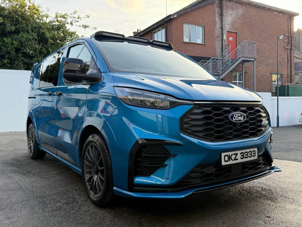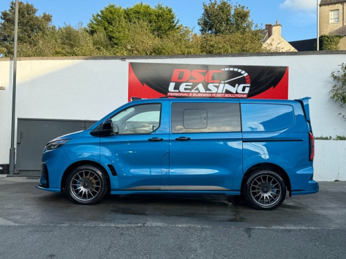 This 2024 Ford Transit Custom 320 MS-RT is a superb example, having had only one owner since new. This four wheel drive model boasts a powerful 2.0 litre diesel engine and meets Euro 6 emission standards. Inside, you'll find a wealth of premium features designed for comfort and convenience, including a heated Sensico wrapped steering wheel and heated premium non animal eco leather single passenger seat. Stay connected and powered up with wireless charging, and enjoy effortless entry with keyless entry. The dual zone automatic air conditioning ensures a comfortable cabin temperature for everyone. The MS-RT trim level signifies a higher specification, offering enhancements that set this Transit Custom apart. The inclusion of a heated steering wheel and heated passenger seat provides exceptional comfort, particularly during colder months. Wireless charging adds a modern touch, simplifying device management on the go. These thoughtful additions, combined with the robust four wheel drive system and efficient 2.0 litre diesel engine, make this 2024 Ford Transit Custom 320 MS-RT a truly capable and well equipped vehicle. Doors - Rear Cargo Liftgate, 13in Touchscreen, 19in Alloy Wheels - Multi-Spoke - Carbon, 2 Remote Keys, 3 Seat Rear Seats with Underseat Stowage, 5G Embedded Modem, ABS - Anti-lock Braking System, AECS NO SMS - Roll Detect 2G, Aggressive and Aerodynamic Front Bumper , Alcohol Interlock, Ambient Interior Lighting, Automatic Headlights with Rain Sensing W, Bodyside Mouldings - Body Colour, Bottle Holder - Twin 2 litre Bottle Capa, Brake Callipers Painted in MS-RT Blue, Cab as Office, Courtesy Light, Daytime Running Lamps, Door Handles - Gloss Black, Door Mirrors - Gloss Black Caps, Doors - Dual Side Load, Drivers Airbag, Dual Power Mirrors - Auto-Power Fold and, Dual Zone Automatic Air Conditi