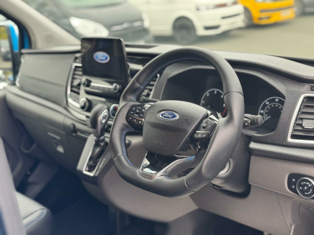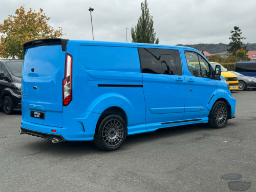 VIEWING BY APPOINTMENT, WE ARE FREQUENTLY OUT COLLECTING AND DELIVERING VEHICLES SO PLEASE CALL BEFORE TO MAKE SURE THIS VEHICLE IS STILL AVAILABLE* LIVE WALK ROUND VIDEOS CAN BE SENT BY REQUEST, HASSLE FREE DELIVERY TO YOUR DOOR PLEASE ENQUIRY FOR COST* BUY THIS CREWVAN TODAY FROM £217 A WEEK WITH A £7599 DEPOSIT, HPI CLEAR, 2 KEYS, Rare Ford Custom MS-RT long- wheelbase 6 seater crewvan 170hp 2.0 6 speed auto finished in Stunning SVO colour KLM blue paint, 6 seats and the all important Tailgate rear door, Only 24,000 miles from new backed up with full Ford service history, Comes with Full MS-RT factory bodykit, MS-RT half Leather interior and bespoke steering wheel, Factory 18 inch OZ racing alloy wheels, Fixed and Reverse camera with front and rear sensors, Factory Sat nav media centre, Auto HID-bi-xenon headlights, A/C, Apple car play, Blind spot recognition, heated seats, heated front screen, Adaptive cruise control, electric windows, electric heated folding mirrors, DAB radio, bluetooth phone prep with music sync, AUX IN, multifunctional steering wheel, bulkhead, lined, Sold with the remainder of Fords 3 years warranty until 09/2026 for piece of mind, LOCATED JUST 5 MINUTES FROM JUNCTION 9 OF THE M5, OPEN 6 DAYS A WEEK, FAMILY RUN BUSINESS WITH OVER 35 YEARS EXPERIENCE, FINANCE AGREED THE SAME DAY, DELIVERY AVAILABLE, PART X WELCOME, please see our website for more vehicles, new stock arriving weekly, ind spot information system with cross traffic alert and trailer lite, 16in alloy wheels - style a, 180 degree rear cargo check arms, 2 interior grab handles, 2 key fobs, 2nd-3rd row courtesy light, 3 button key fob, abs and esp plus, automatic headlights - follow me home, automatic headlights with rain sensing wipers, b pillar assist handle, body colour rear bumper, body coloured exterior mirror finish, body coloured lift - decklid exterior handles, body coloured plastic front bumpers, bodyside mouldings - body colour, bottle holder - twin 2 litre bottle capacity - facia-mounted, bulkhead - moulded with window, chrome grille with 3 bars, colour keyed exterior pack, configurable unlocking - config 2, courtesy lights - header, daytime running lights level 2, digital rear view mirror, door handles - body colour, door open tyre carrier drop, doors - rear hinged, doors auto re-locking, driver airbag restraint, driver illuminated sunvisor, dual note electric horn, dual side load doors - glazed, esc - electronic stability programme, electric windshield defroster, electrically-operated front windows with one touch drivers, embedded modem, emergency brake light flashing, extended carpet inside floor cover with rubber rear, extra heavy duty alternator, flip open 2nd row l-h side window, flip open 2nd row r-h side window, floorwell lights, ford easy fuel system, front active seat belts, front fog lights, front fog lights with adaptive cornering, front headlamp leveling, front parking aid, front seat belts with pre-tensioners, front splash guard - mud flaps, headlights - halogen projector, headlights - quad beam, headliner - extended - moulded, high mounted stop lamp, hill start assist, ice feature pack 21, inclination anti-theft sensor, interior trim accent pack c, kerbside side load door, led load compartment light, load compartment - tie down loops x4, lockable glovebox, locking wheel nuts, low series cluster, manual air conditioning, mechanical parking brake, mini overhead console, multi channel door entry remote, passenger airbag restraint, passenger illuminated sunvisor, power assisted steering, power door deadlocks - shielded, power fold back dual power mirrors, power lock group, privacy glass, quickclear heated windscreen, rear coat hook, rear door edge reflector strip, rear seat belts, rear seat pack 3, rear splash guards, recirculation heater - front, restricted side load door opening, reverse parking aid, roof storage for driver sunglasses, seat belt reminder system - drivers and front passengers, seat belts - 3-point diagonal inertia reel - all seats, seat pack 25, side-rear door trim panel - level 1, spare wheel - conventional, speed control, standard duty battery, standard duty suspension, starter equipment -20 degrees c, steering column - rake and reach adjustment, steering wheel - leather-trimmed, storage - drivers side storage compartment on facia top, storage - front door map pockets, storage - underseat stowage compartment, thatcham category 1 alarm c, tool kit, trip computer, two stage unlocking, visibility pack - high, washer tank level warn lamp, wipers - front variable intermittent