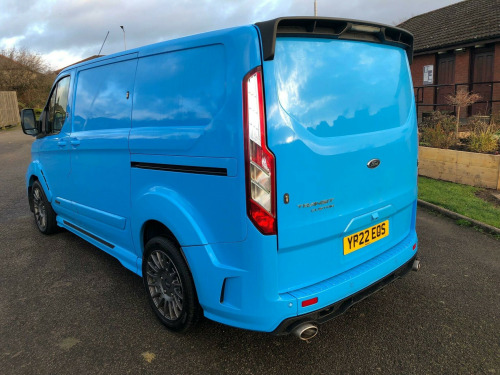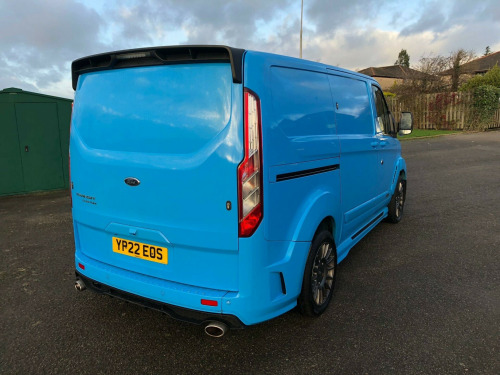 The 2022 Ford Transit Custom MS-RT in Fast Blue is a sporty, eye-catching commercial van that features an automatic transmission, motorsport-inspired styling, and a premium eco-leather and suede interior. Key Features and SpecificationsExterior Styling: The van boasts an aggressive and aerodynamic front bumper with an integrated splitter, wide body arch extensions, lower sports side skirts, and a large, motorsport-inspired rear spoiler and diffuser. It features exclusive 18-inch (or sometimes 19-inch, depending on specific configuration) Anthracite alloy wheels and distinctive MS-RT Blue painted brake calipers. The paint color is a vivid Fast Blue metallic finish, exclusive to MS-RT models.Performance: The 2022 model in question typically comes with a 2.0-litre EcoBlue diesel engine producing around 170 PS (168 bhp) or 185 PS, paired with an 8-speed or 6-speed automatic transmission. Some configurations offer optional all-wheel drive (AWD).Interior Comfort & Technology: The cabin is upgraded with a hand-crafted eco-leather and suede interior with exclusive sports seat bolsters and blue contrast stitching. It includes a heated, flat-bottomed sports steering wheel with a 12 o'clock blue marker and MS-RT inlays. Standard technology features often include a touchscreen infotainment system with Apple CarPlay/Android Auto, Satellite Navigation, a digital rear-view camera, and adaptive cruise control.Practicality: Despite its sporty appearance, the van retains strong commercial vehicle practicality, offering a generous load space and payload capacity, along with dual side loading doors and heated front seats.. 16in Alloy Wheels, 2nd Remote Key Fob, 8 Way Adjustable Drivers Seat with Armrest, ABS - Anti-lock Braking System, Airbag - Front Passenger, Automatic Headlights - Follow Me Home, Automatic Headlights with Rain Sensing Wipers, Body Colour Front Bumper and Mirror Housing, Body Colour Rear Bumper, Bodyside Mouldings - Body Colour, Bulkhead - Full Steel with Load Through Hatch, Chrome Grille with 3 Bars, Colour Keyed Exterior Pack, Complete Rear Trim Board - Half Height, Cruise Control, Door Handles - Body Colour, Drivers Airbag, EBA - Emergency Brake Assist, ESC - Electronic Stability Programme, Easy Clean Load Floor, Electrically-Operated Front Windows with One Touch Drivers, Ford Eco Mode - Driver Information System, Front Manual Air Conditioning, Gear Knob - Leather, Halogen Headlights with Courtesy Delay, Halogen Projector Headlights with LED Daytime Running Lights and Adaptive Cornering Front Fog Lights, Heavy Duty Alternator, Hill Start Assist, ICE Pack 21 - SYNC3 Audio, Interior Grab Handles - Front, LED Load Compartment Light, Light Tinted Glass - ilo Privacy Glass, Load Compartment - Protection Kit, Load Compartment - Tie Down Loops x8, Lockable Glovebox, Mini Overhead Console, Moulded Load Floor Liner, Parking Aid - Front and Rear with Front Fog Lamps, Passenger Side Sliding Load Door with Track Cover, Power Assisted Steering, Power Door Deadlocks - Shielded, Power Foldable and Heated Mirrors, Quickclear Heated Windscreen, RSC - Roll Stability Control, Rear Doors - 180° Opening - Unglazed - Positive Stop at 90°, Remote Central Door Locking with Deadlocks, Seat Pack 25, Seats - Dual Passenger with Underseat Stowage, Selectable Drive Mode, Shift Indicator Light, Side Wind Mitigation, Spare Wheel - Conventional, Steering Column - Rake and Reach Adjustment, Steering Wheel - Leather-Trimmed, Steering Wheel Controls, Sunglasses Holder in Roof Stowage, Sunvisors - Illumination of Driver and Passenger, Thatcham Category 1 Alarm, Traction Control - TC, Trailer Sway Control, Trip Computer, Two 12V Power Socket, Vehicle Maintenance Monitor, Water in Fuel Filter with Sensor.