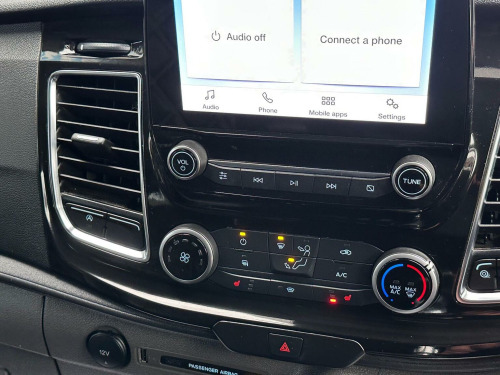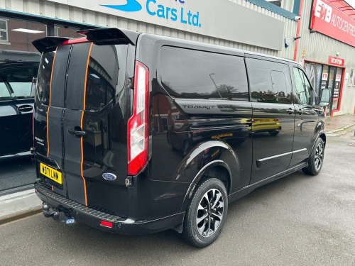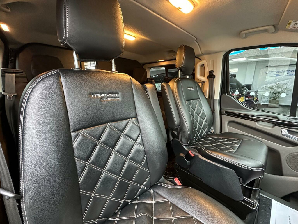 This 2022 Ford Transit Custom Sport Crew Van boasts a full dealership service history and has had only one owner from new. This L2 H1 Euro 6 compliant model features a powerful 2.0L 320 EcoBlue diesel engine, delivering 182 bhp and offering a towing weight of 2800 kg. Notable features include High Intensity Discharge (HID) Xenon headlights, Lane Keeping Alert with automatic headlights, and front and rear parking aids complete with front fog lamps. The cabin is equipped with front manual air conditioning for your comfort. With an impressive fuel economy of 42 mpg, this Transit Custom Sport Crew Van is designed for efficiency. The automatic headlights, including a follow me home function, and the automatic on feature enhance convenience and safety. These highlights demonstrate how this vehicle offers a superior driving and ownership experience compared to other similar vans on the market.