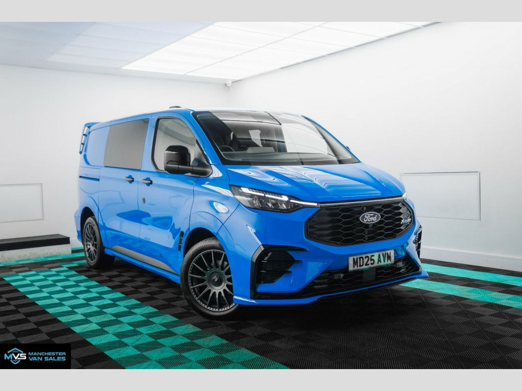 RARE FORD TRANSIT CUSTOM 2.0 320 MS-RT Crew Van AWD 170BHP AUTO - 1 + 1 CAPTAINS SPORTS SEATS WITH TAILGATE - LEATHER MS-RT SPORTS STEERING WHEEL - UPGRADED DASH VERY HIGH SPEC INCLUDES REVERSE CAMERA - MULTIFUNCTIONAL STEERING WHEEL WITH CRUISE CONTROL - WIRELESS CHARGING - LANE ASSIST - HEATED ELECTRIC SEATS - WIRELESS CARPLAY WITH LARGE INFOTAINMENT SCREEN - AIR CON - PARKING SENSORS - 5 SEATS - FACTORY ALARM & IMMOBILISER - ELECTRIC WINDOWS & MIRRORS PLUS LOADS MORE EXTRAS BUSINESS LEASE & FINANCE AVAILABLE FREE NATIONWIDE DELIVERY CALL 01613388787 FOR MORE INFO FORD WARRANTY 13in Touchscreen, 19in Alloy Wheels - MS-RT, 2 Remote Keys, 5G Embedded Modem, ABS - Anti-lock Braking System, AdBlue Tank Size - 20L, AECS NO SMS - Roll Detect 2G, Aggressive and Aerodynamic Front Bumper , Alcohol Interlock, Ambient Interior Lighting, Automatic Windshield Wiper, Brake Callipers Painted in MS-RT Blue, Cab as Office, Carpet Floor in First Row and Rubber in , Courtesy Light, Daytime Running Lamps, Door Mirrors - Gloss Black Caps, Doors - Dual Side Load, Drivers Airbag, Dual Power Mirrors - Auto-Power Fold and, Dual Zone Automatic Air Conditioning, Electric Windows - Power Front with Driv, ESC - Electronic Stability Programme, Extended Range Fuel Tank - 70 Litres, Fixed 2nd Row