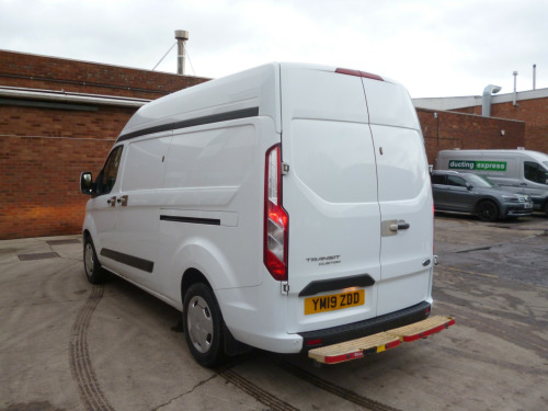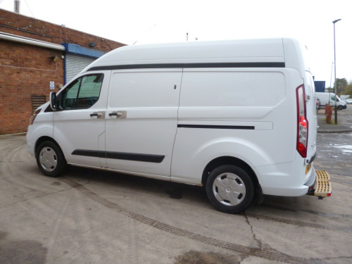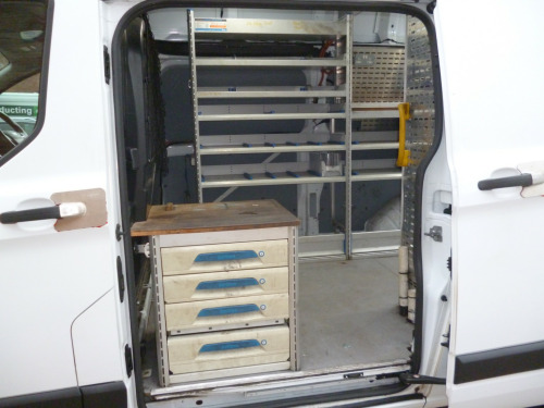 Ford Transit Custom Trend 340 L2 H2 long wheel base high roof 1 owner from new with full main dealer service history including wet belts comes with air conditioning power fold electric mirrors front and rear parking sensors ford sync hands free blue tooth 2 keys high security locks rear step work shop in the rear with drawers bench shelves vice and 240 volt power electric windows remote central locking DAB radio 12 volt and usb charging points hill assist power steering abs ect