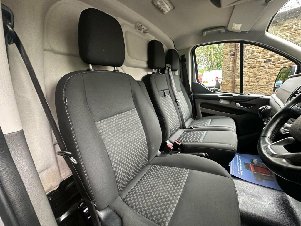 This 2018 Ford Transit Custom presents a remarkable opportunity with its exceptionally low mileage of just 69,200 miles, especially considering its age, and the benefit of having had only one owner from new. As a 2.0 340 EcoBlue Trend L2 H1 Euro 6 model, this van is powered by an efficient 2.0 litre diesel engine, meeting Euro 6 emissions standards. The Trend trim level ensures a good balance of functionality and comfort, and it comes equipped with useful features such as front and rear parking aid, complete with front fog lamps, and the ICE Pack 17 which includes a 4.2 inch monochrome TFT screen with Bluetooth connectivity for your convenience. With a generous cargo volume of 6,200 litres, this Transit Custom is well suited for a variety of professional needs. Its towing weight of 2,800 kg further enhances its versatility, allowing you to transport heavier loads with confidence. The inclusion of front and rear parking sensors, along with the Bluetooth enabled audio system, sets this vehicle apart by offering enhanced driver assistance and connectivity, making every journey more manageable and enjoyable. Euro 6, LWB, 2x sliding doors, Ply lined, Bulk head, Security plates, Navigation system, Parking sensors, Rear shelves, Air Conditioning, 6 speed, 3 x seats, Trip Computer, Media/Radio/USB/Blue tooth, Elec Windows, Cup Holder, Stop/Start, MFSW, Air Conditioning, Elec Mirrors, Remote Central Locking, One Owner, Service History, Finance available