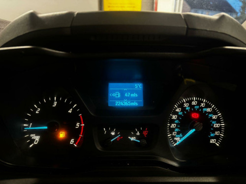 . 15in Steel Wheels - 6.5x15 (215/65 R15) with Half Caps, Anti-Lock Braking System (ABS) and Emergency Brake Assist (EBA), Auxiliary Connection Point - 3x60 Amp, Located Under Driver Seat Pedestal , Power Point Socket 2x12V, Bluetooth Hands-Free Phone, Bulkhead - Full Width Steel, Unglazed with Load-Through Facility, Day Time Running Lights, Deadlocks, Driver Seat Armrest, Driver Seat Height Adjustment, Drivers Airbag, Electrically-Operated Front Windows with One-Touch Lowering on Drivers Side, Electronic Brake-Force Distribution (EBD), Electronic Stability Control (ESC) and Roll-Over Mitigation (ROM), Ford Connected Audio System - Radio and AUX, Ford Eco Mode (Driver Information System), Four Front Speakers, Head Restraints - Front, Hill Start Assist (HSA), Immobiliser - Safeguard Passive Anti-Theft System (PATS), Outside Temperature Display, Passengers Sliding Side Load Door and Step, Power Assisted Steering (PAS), Rake and Reach Adjustable Steering Wheel, Remote Audio Controls, Remote Control Central Locking with One Key Fob, Steel Spare Wheel, Third Brake Light, Tinted Glass Complete, Twin Facia-Mounted Cup Holder, Tyre Inflator Kit, USB/iPod Connectivity Port, Upholstery - Charcoal Cloth, Voice Control System.