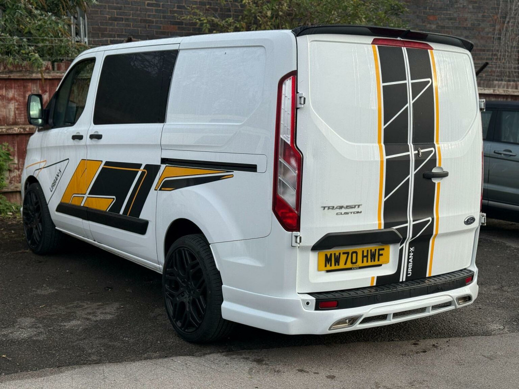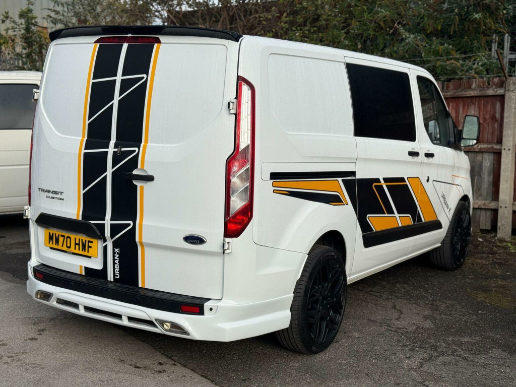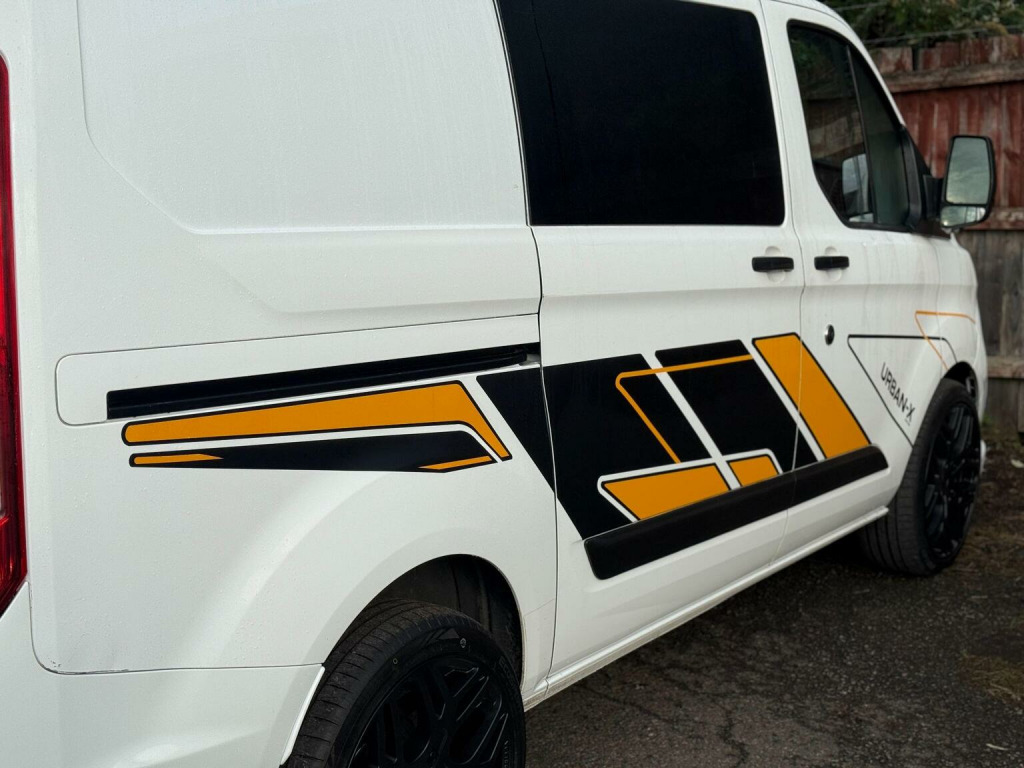 2021 Ford Transit Custom 2.0 280 EcoBlue Leader L1 H1 – Sport Style & 7-Seater, This 2021 Ford Transit Custom has had just one owner from new and comes with a full history and a clear HPI check. Plus the biggest positive and peace of mind the wet belt has been changed and we have proof of this. Its powered by the reliable and efficient 2.0 EcoBlue diesel engine (Euro 6), offering great performance and around 45mpg, so its easy on fuel and ULEZ compliant. This vans been professionally upgraded with a full sports styling kit, vinyl pack, rear spoiler, and custom honeycomb Ford grille with LED lighting, giving it a bold, modern look that really stands out on the road. Its also sitting on brand-new 20-inch Revere alloy wheels that completely transform the appearance. Inside youll find a 7-seater conversion with air conditioning, front and rear parking sensors, and cruise control, making it comfortable and practical for both business and personal use. Drives spot on and looks superb — definitely one of the cleanest and best-looking Customs out there. ????Located in the West Midlands, ???? Message for more info or more photos