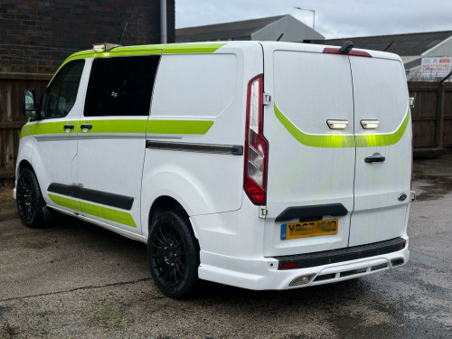 This 2017 Ford Transit Custom represents exceptional value, having had just one careful owner from new. Previously owned by a lease company, this well-maintained panel van is powered by a 2.0-litre TDCi diesel engine and meets Euro 6 emissions standards, making it fully compliant with current environmental regulations. Presented in the 310 L1 H1 5-door configuration, the Transit Custom is renowned for its reliability, practicality, and strong build quality. This example goes far beyond the standard specification and truly stands out from the rest. The previous owner has professionally converted the van into a stunning 7-seater, making it ideal as a family day camper or lifestyle vehicle. The interior features a carpeted floor, LED lighting throughout the rear, LED rear door lights, and a side LED entrance light. There is also hot water access, which can be conveniently controlled from the front of the vehicle. Externally, this van looks incredible and benefits from a host of upgrades including:, 18-inch Wolfrace alloy wheels with brand new tyres, Sportline body kit, Urban X vinyl body styling, Rear spoiler, Bonnet bra, Electric folding mirrors, With its eye-catching appearance, extensive extras, and unique camper-style conversion, this Transit Custom truly stands out from any other on the market. A reliable, versatile, and stylish van that is ready for both work and family adventures.